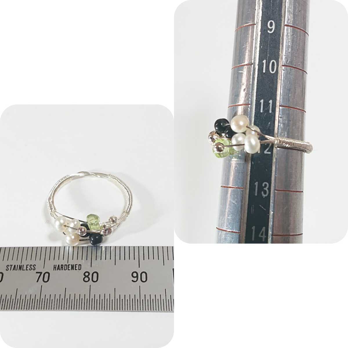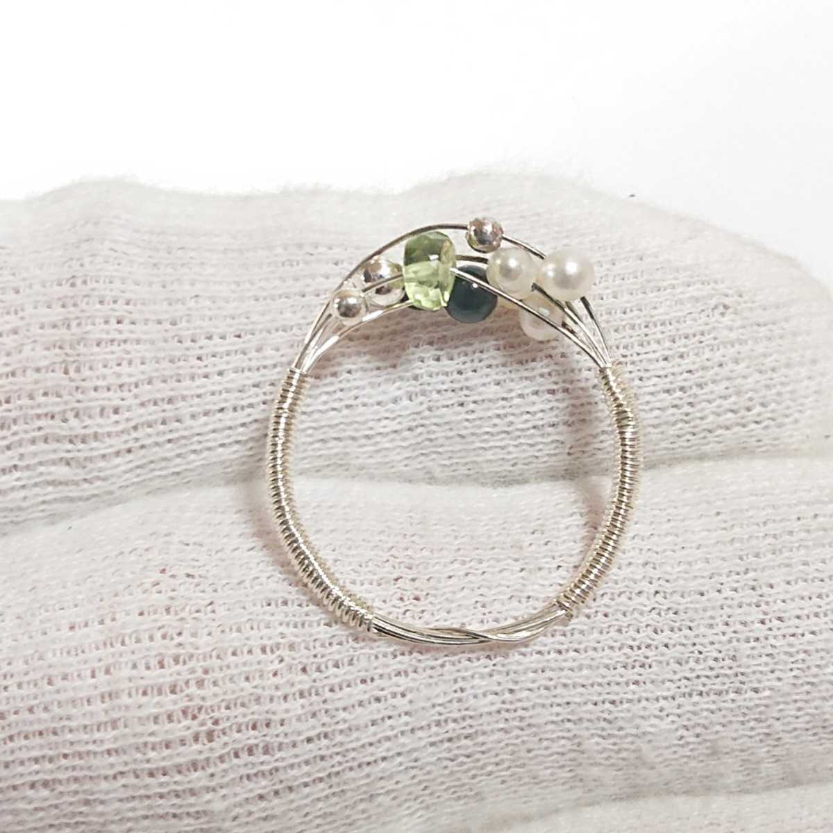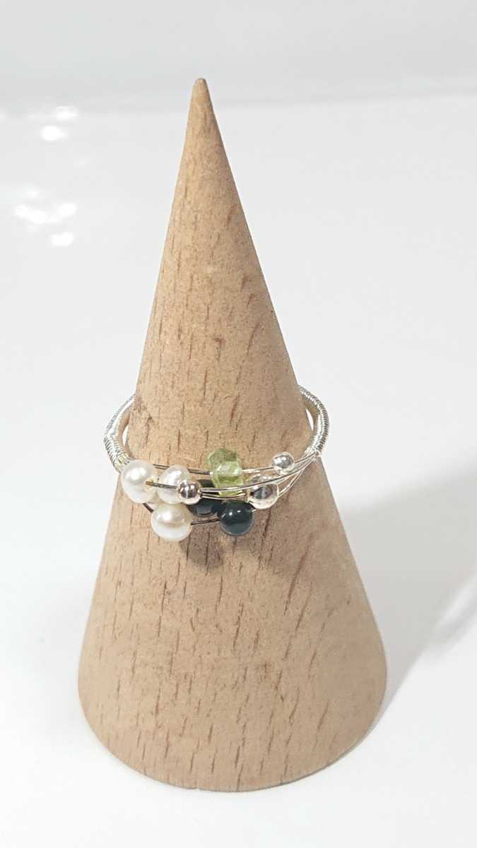 リング部分は極細の銀線をワイヤーワークでコイル巻きに仕立てていてとても軽いほぼ針金みたいなイメージです。