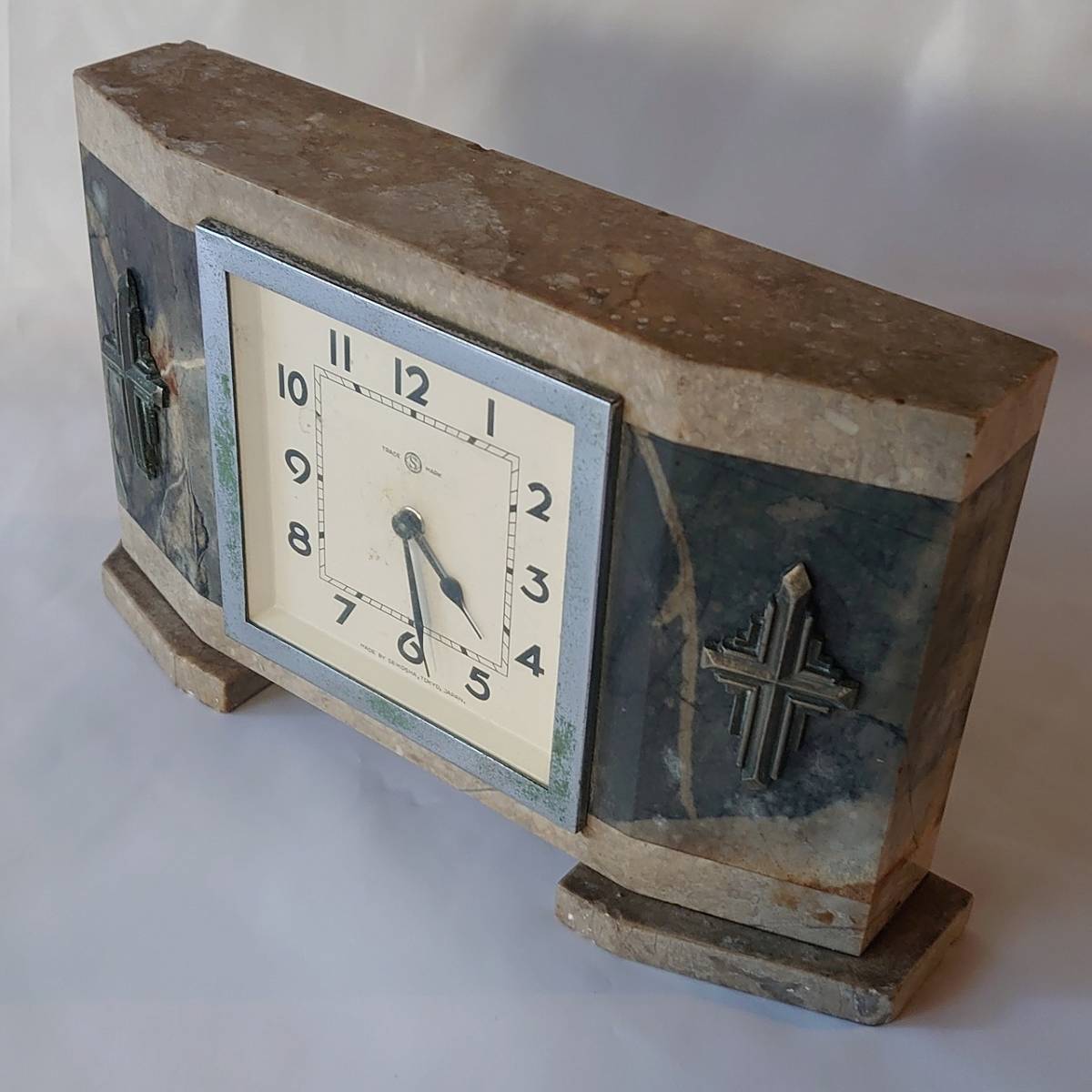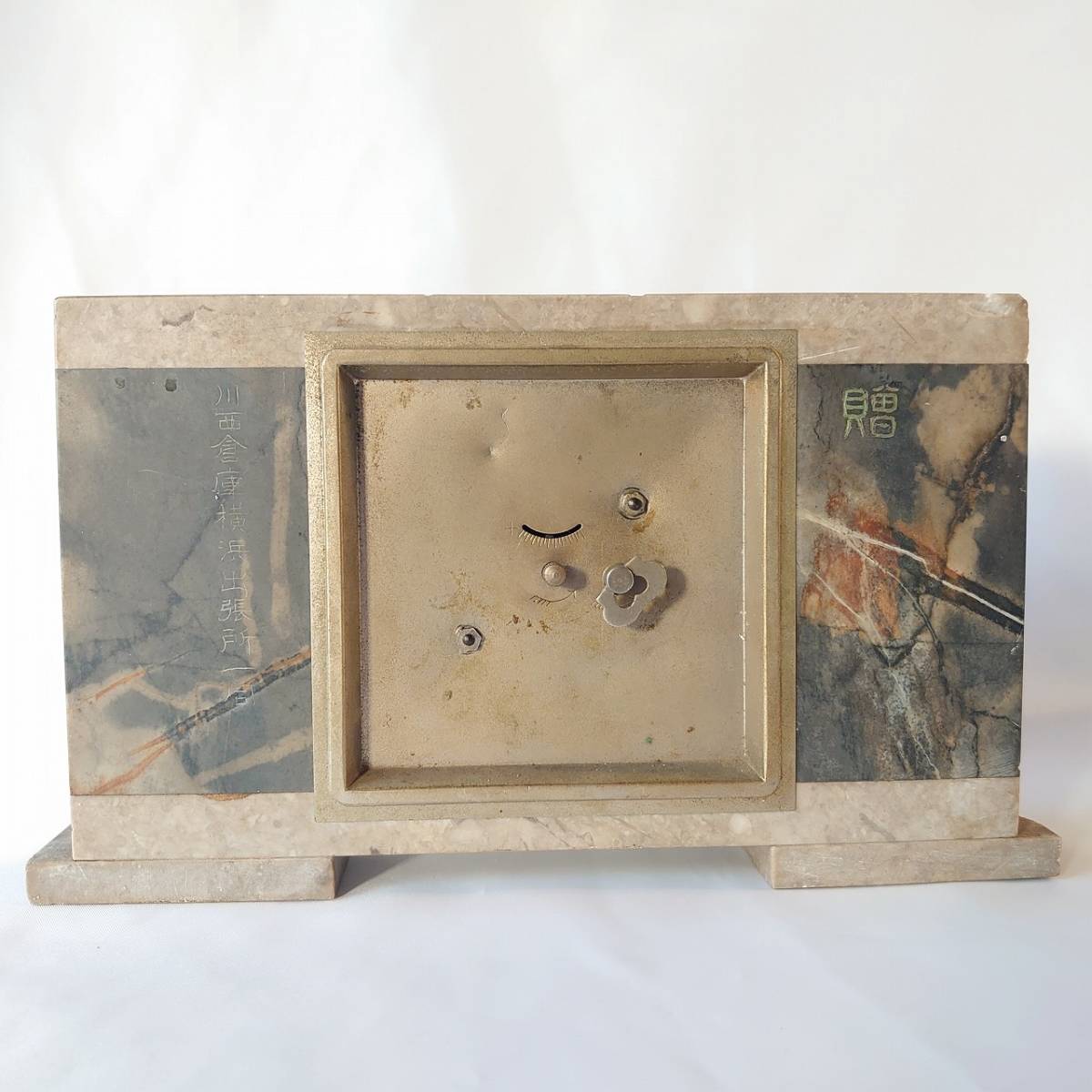置時計 SEIKOSYA TOKYO JAPAN 幅約228㎜ 奥行約53㎜ 高さ約132㎜ 重量約2345g 石細工 昭和レトロ アンティ―ク 古物 骨董 稼働品