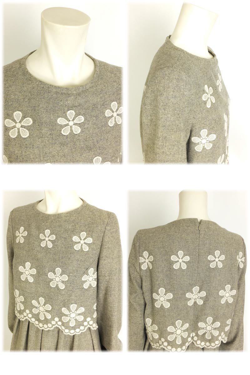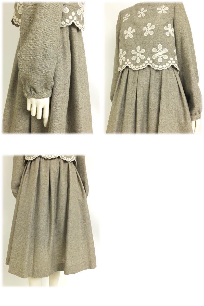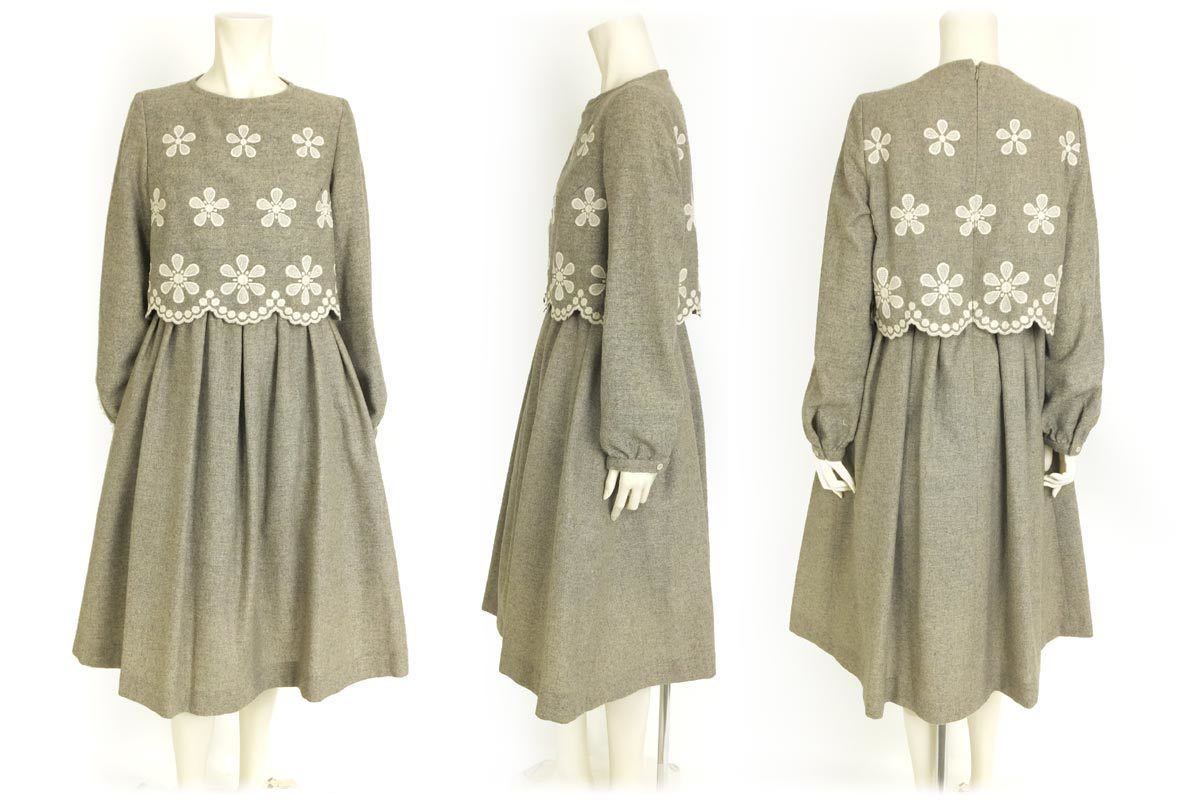 ブラウスとスカートに見える素敵なワンピースです。ふんわりとした袖とスカートで、スカラップとお花の刺繍が女性らしい印象を与えます。