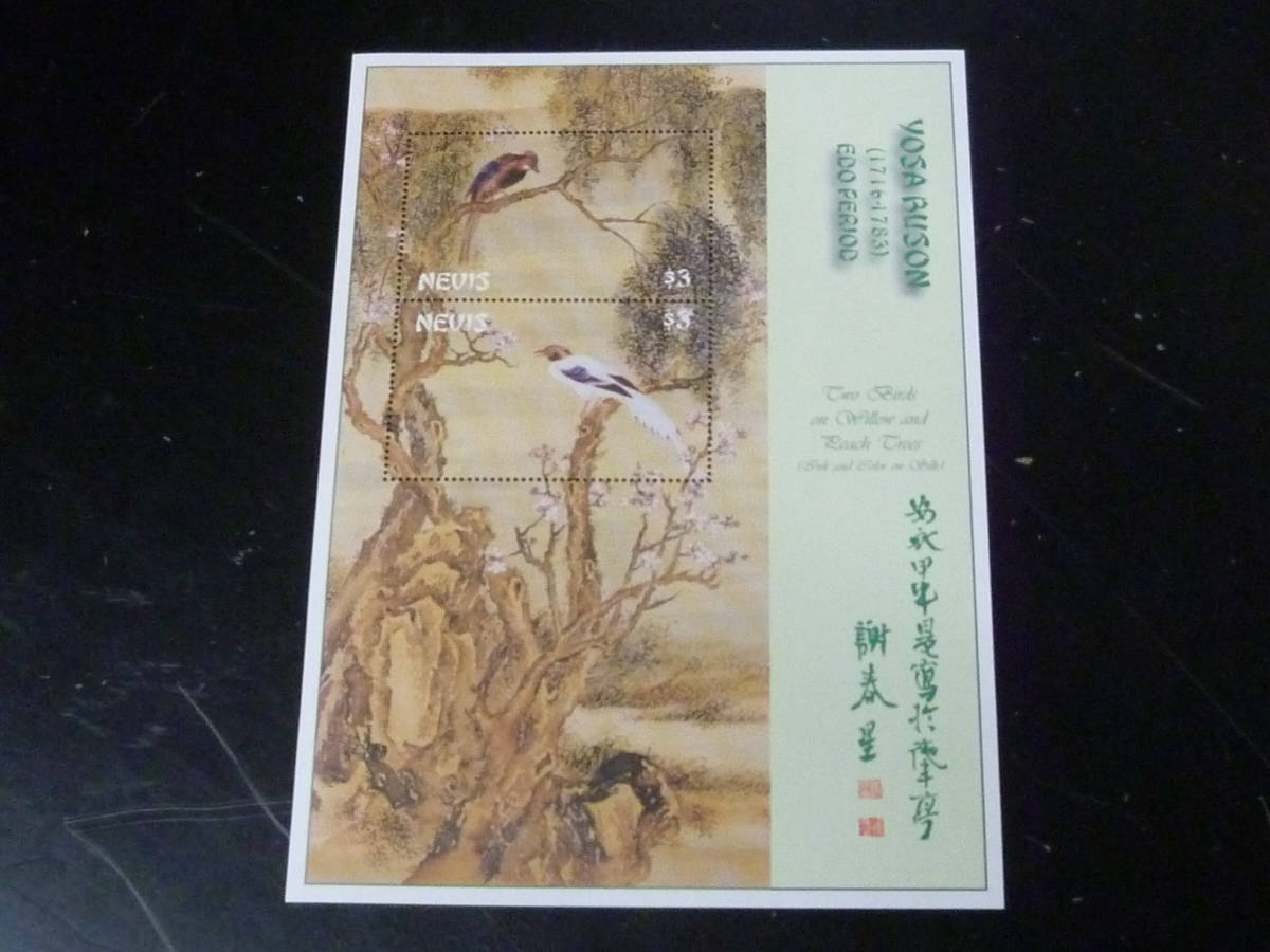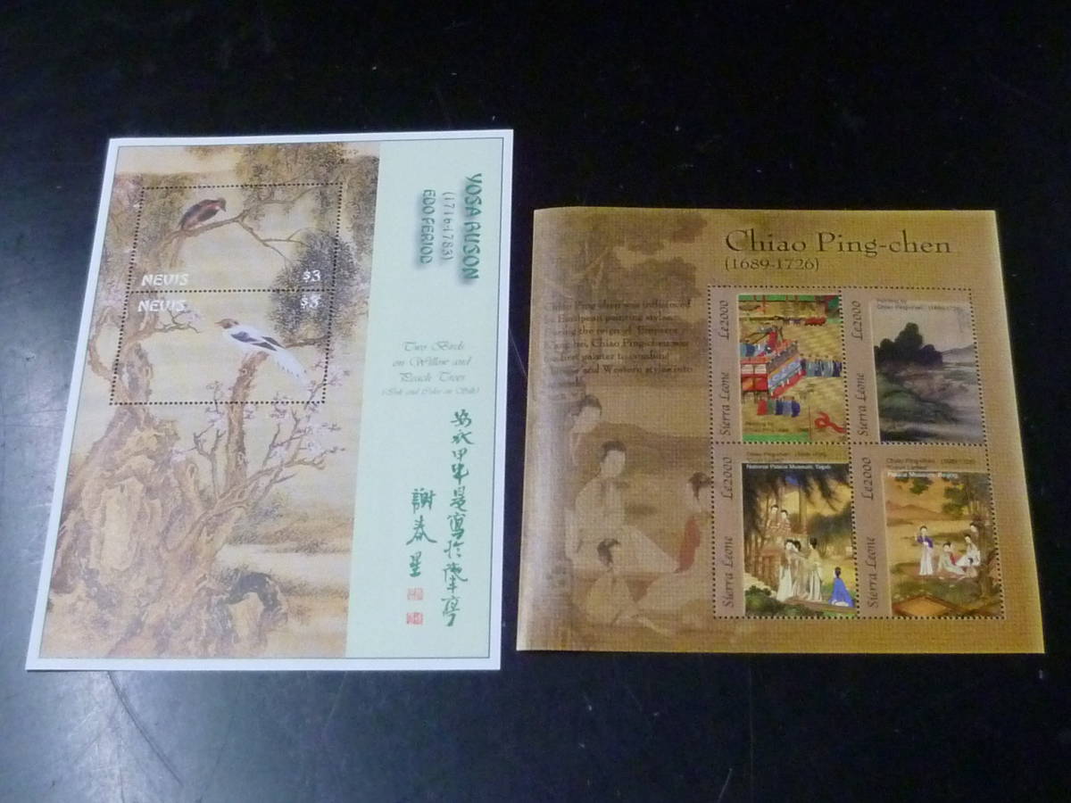 21MI P 絵画切手 №21 ネビス・他 中国画・他 各種 シート 計2種 未使用NH・VF・OG