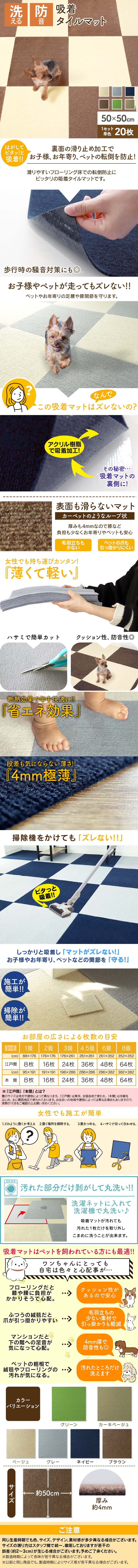 | 置くだけで簡単! 「吸着タイルマット」 お家だけで無くオフィス等でも大活躍間違いなし! カラーもお部屋に馴染む4色カラー展開。 ★安心・安全の吸着性 裏面の滑り止め加工でお子様、ペットの 転倒を防止します! ★お好きな形にカット 部屋のスペースに合わせて自由に組み合わせて敷くことができ 床面の形に合わせて、ハサミで簡単にカットできます 。 ★丸洗いの可能 また汚れた部分だけを剥がして洗濯も可能! 洗濯ネットに入れて洗濯機で丸洗い◎ 【商品仕様】 カラー: ネイビー 本体サイズ: (約)幅50×奥行50×厚み4mm ※1枚 素材: PE樹脂 【注意事項】 ・製造時期によっては若干色味が異なる場合があります。 ・汚れた場合は固く絞った雑巾で拭き取るか、水洗いをしてください。水分が隙間に入り込んだ場合はカビ発生の原因となる場合がありますので、定期的にマットを剥がして掃除してください。 ・PE樹脂の臭いが最初はある程度しますが、人体には影響ありません。臭いによる返品はお受けできませんので、臭いの気になる方はその旨をご了承の上ご購入をお願いいたします。 ・重量物を載せますと、マットが凹み変形する恐れがあります。 ・床材との温度差で製品が反る場合があります。 ・商品は、モニターによって色合いが異なって見える場合があります。 ・材質の特性上、厚みに多少の誤差がある場合がございます。あらかじめご了承ください。 ・仕様・デザインは改良のため予告なく変更することがあります。 ▼検索キーワード 吸着マット タイルカーペット 50cm×50cm 厚さ3mm 洗える 接着材不要 吸着 タイルマット カーペット カーペット チェアマット 床保護マット 滑り止め対策 春 夏 秋 冬 ウォッシャブル 転倒防止 ペット 便利グッズ 便利品 プレゼント 贈り物 贈物 おすすめ オシャレ 敬老の日 母の日 父の日 ギフト 誕生日 プレゼント 父の日ギフト 誕生日 プレゼント 結婚祝い 福袋 メンズ レディース 男性 女性 あす楽 人気 おすすめ |