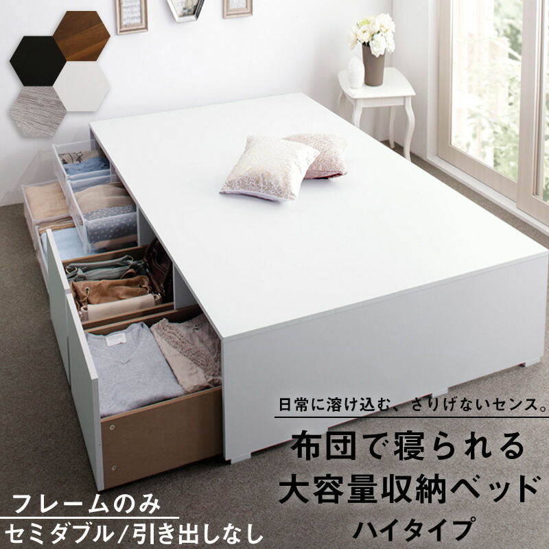ベッド ベッドフレーム フィッツ 木製 収納付きベッド コンパクト ヘッドレス ベッドフレームのみ ハイタイプ 引き出しなし セミダブル
