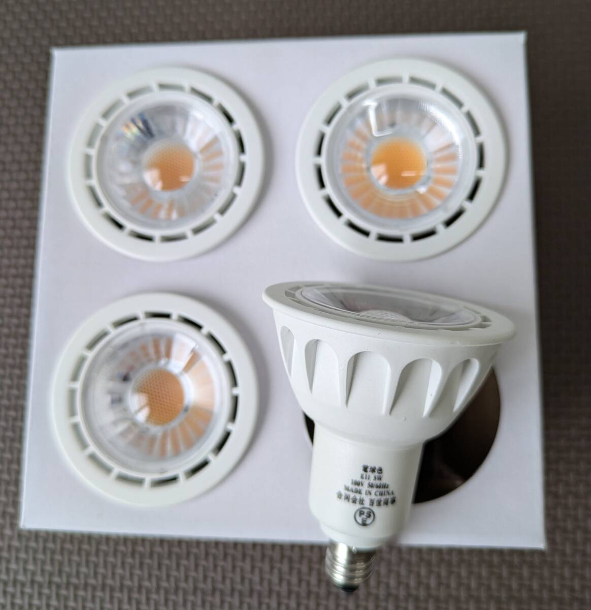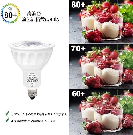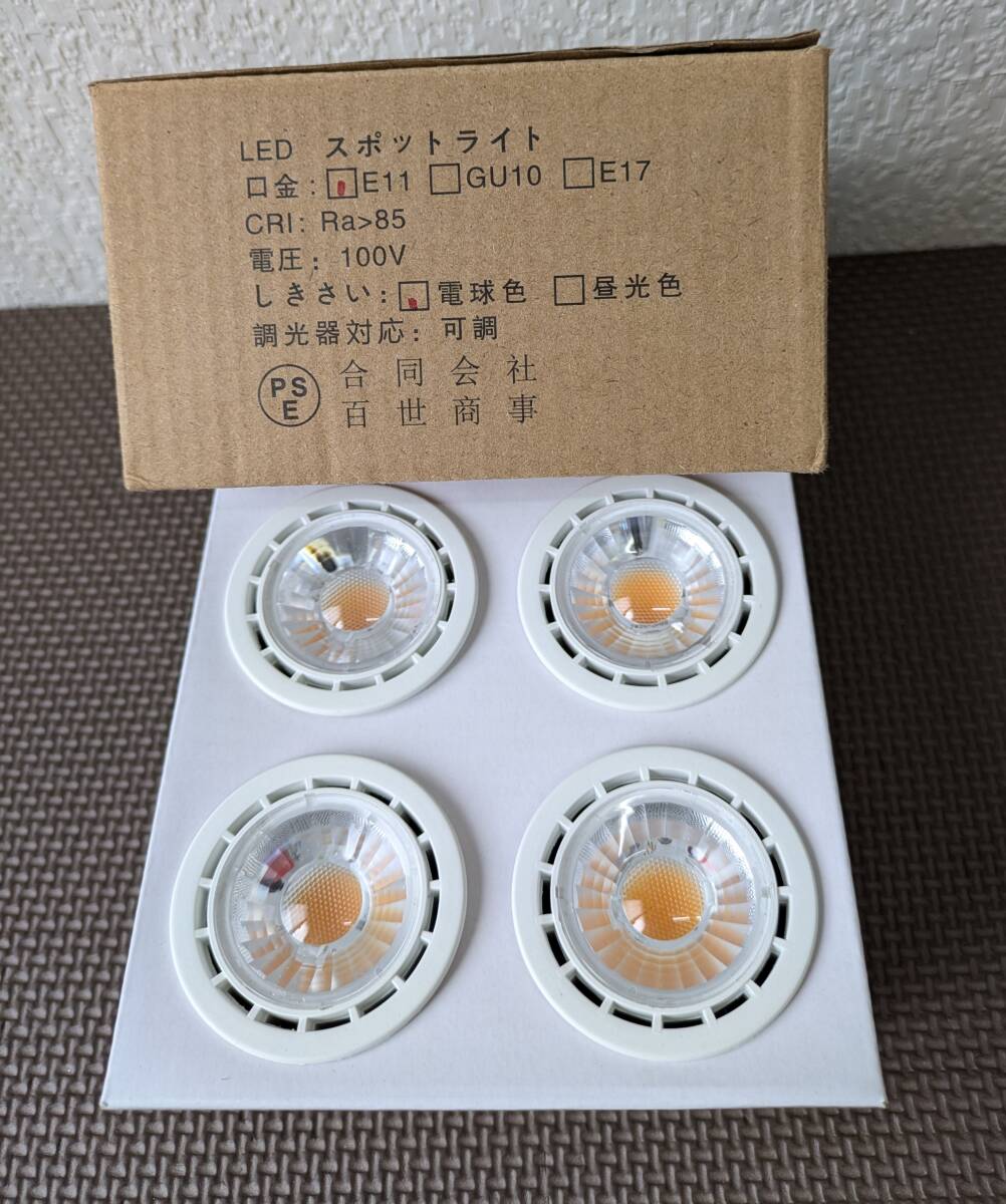 • E11口金、Φ50、調光器対応、ビーム角:40°、電球色 3000K、500lm、演色指数CRI:>80Ra、電圧:100V/50-60HZ