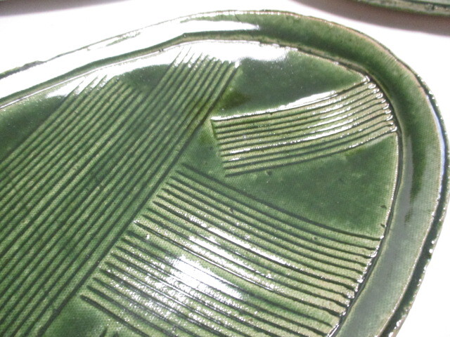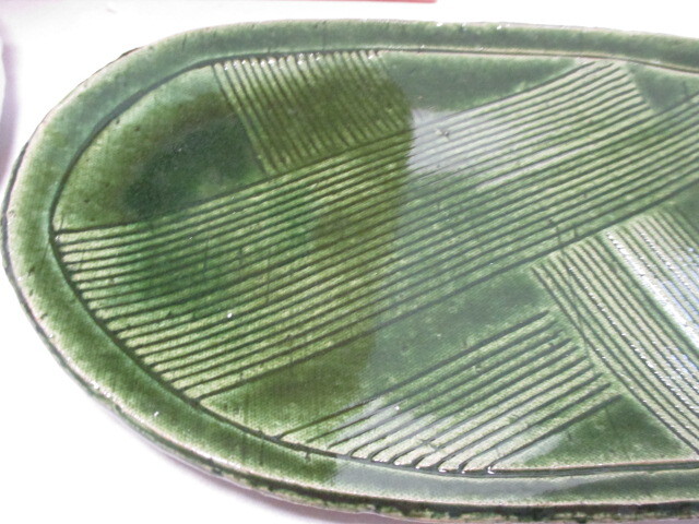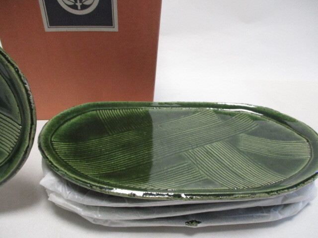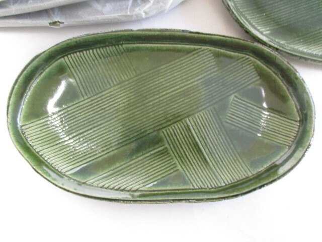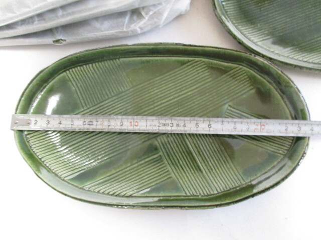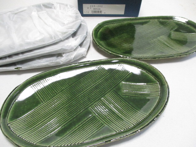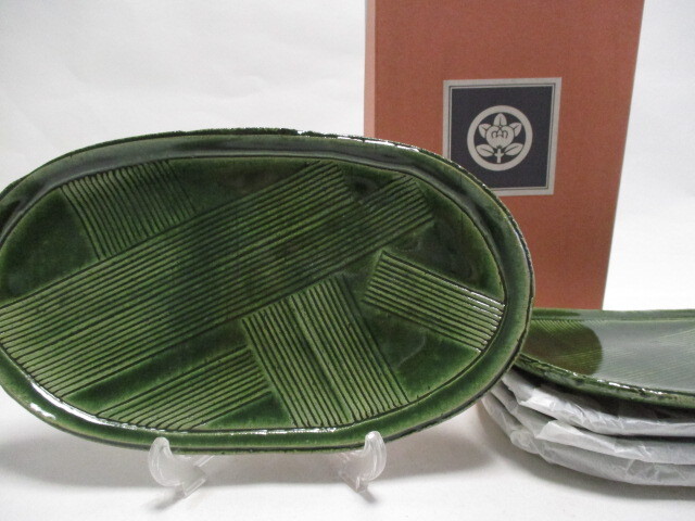 たち吉 織部 青松 焼き物皿 5枚 /刺身皿 楕円皿 中皿 プレート