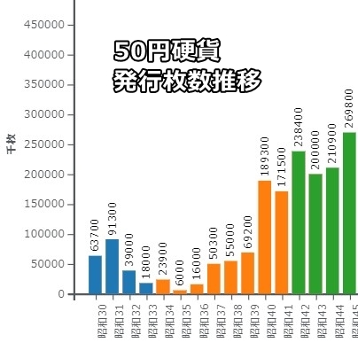 ■ 旧50円硬貨は、昭和30年~昭和41年に発行されました。