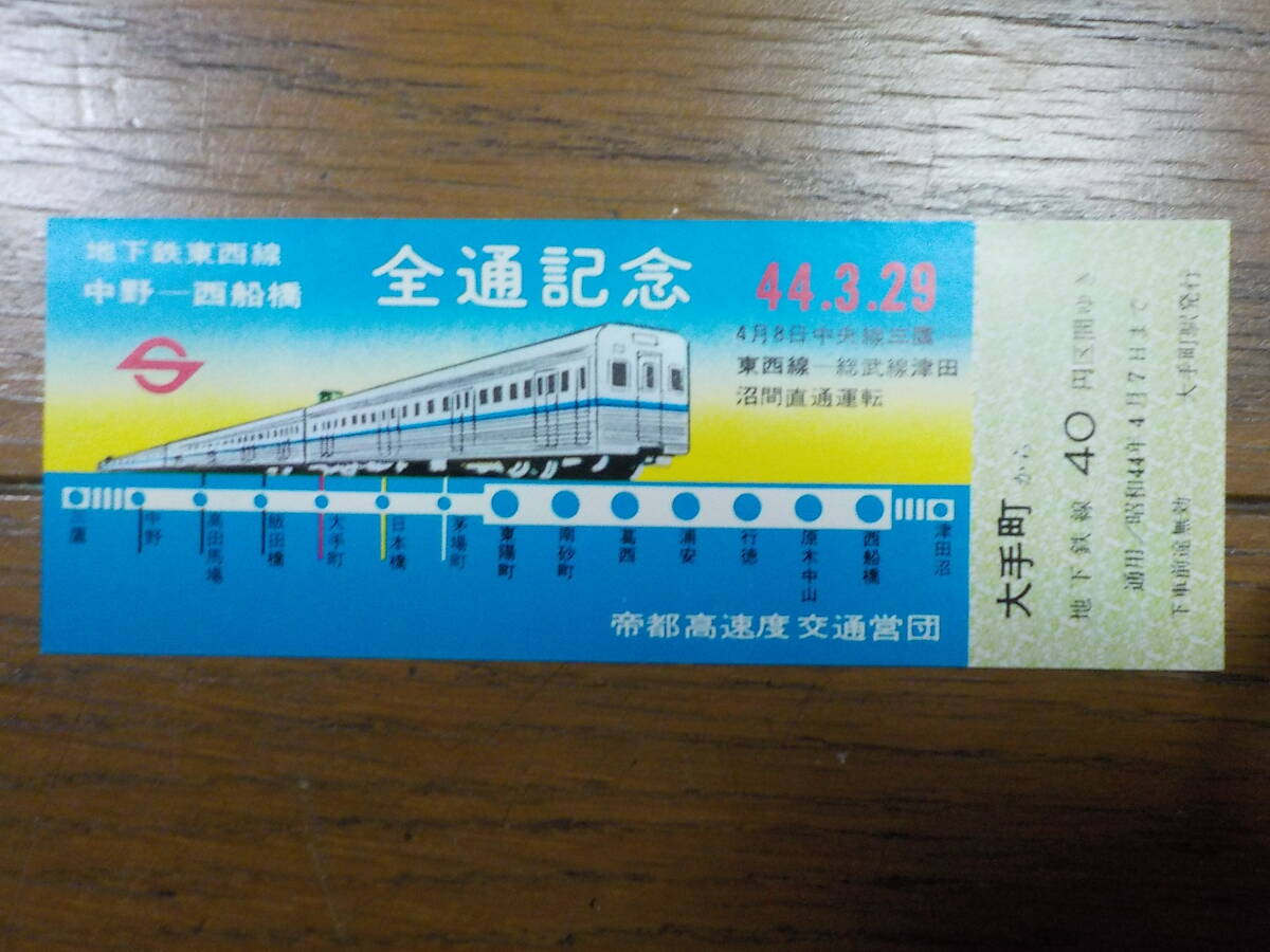 地下鉄東西線 中野-西船橋 全通記念乗車券 営団地下鉄 44.3.29