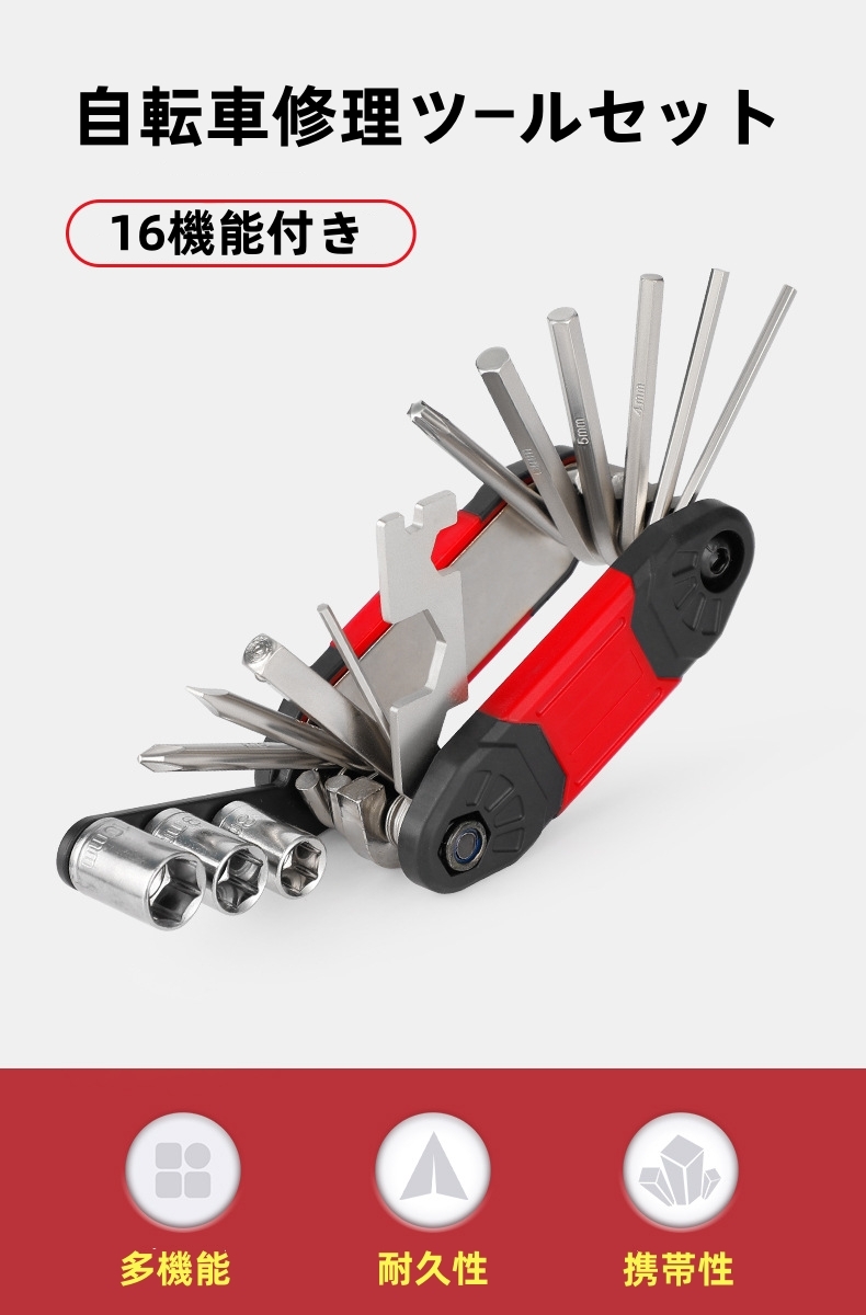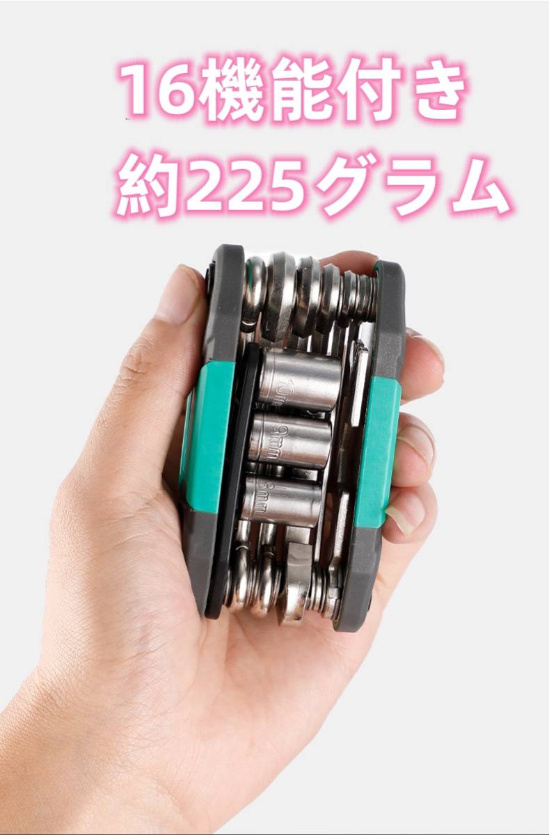 自転車工具セット ミニ 16機能付き マルチツール  バイク修理ツール  ブルー