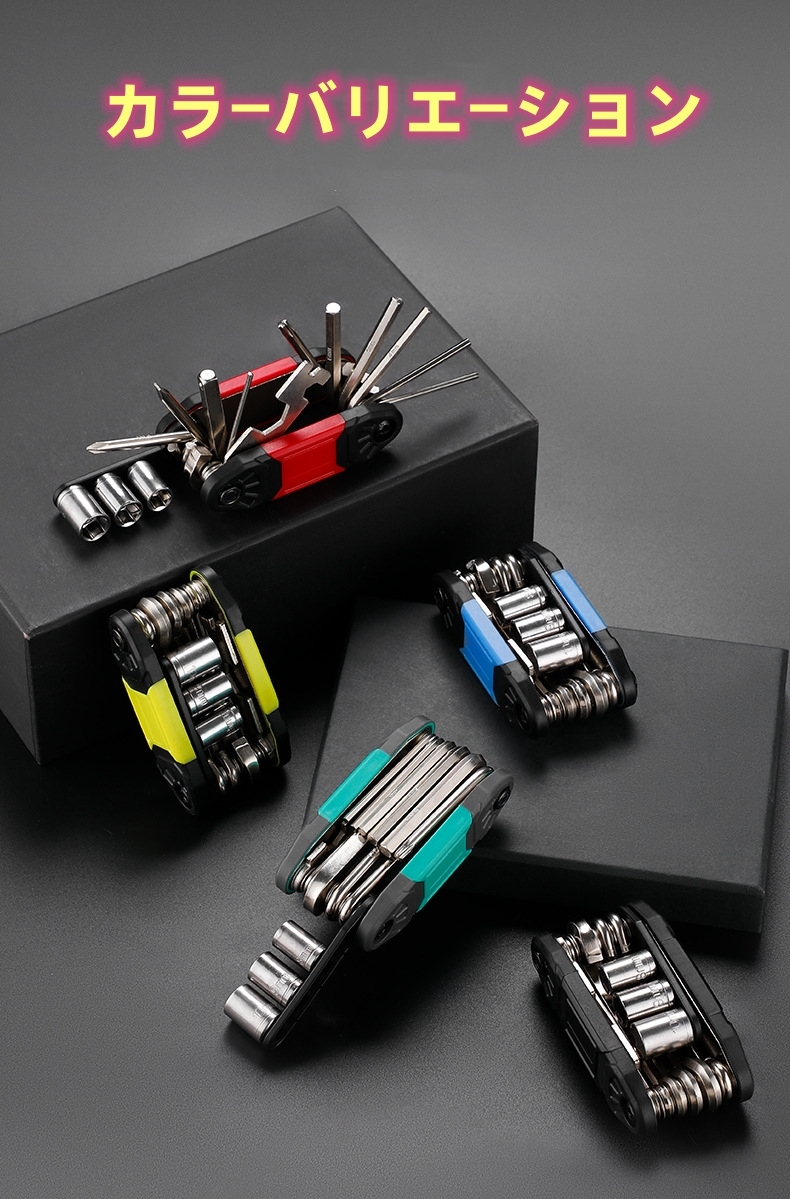 送料無料 ゆうパケット 自転車工具セット ミニ 16機能付き マルチツール バイク修理ツール ブルー