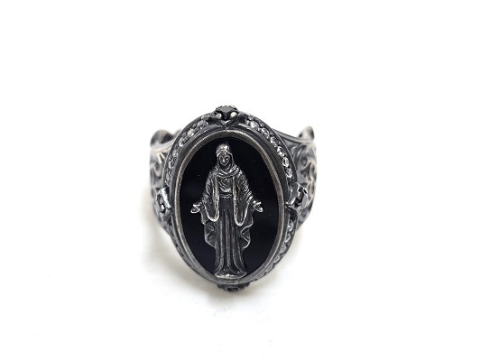 【中古品】 アルテミスクラシック Artemis Classic 黒衣聖母 マリア 指輪 シルバーリング 925 メンズ 19号 漆黒オニキス ○YR-19231○