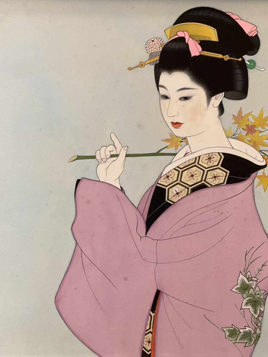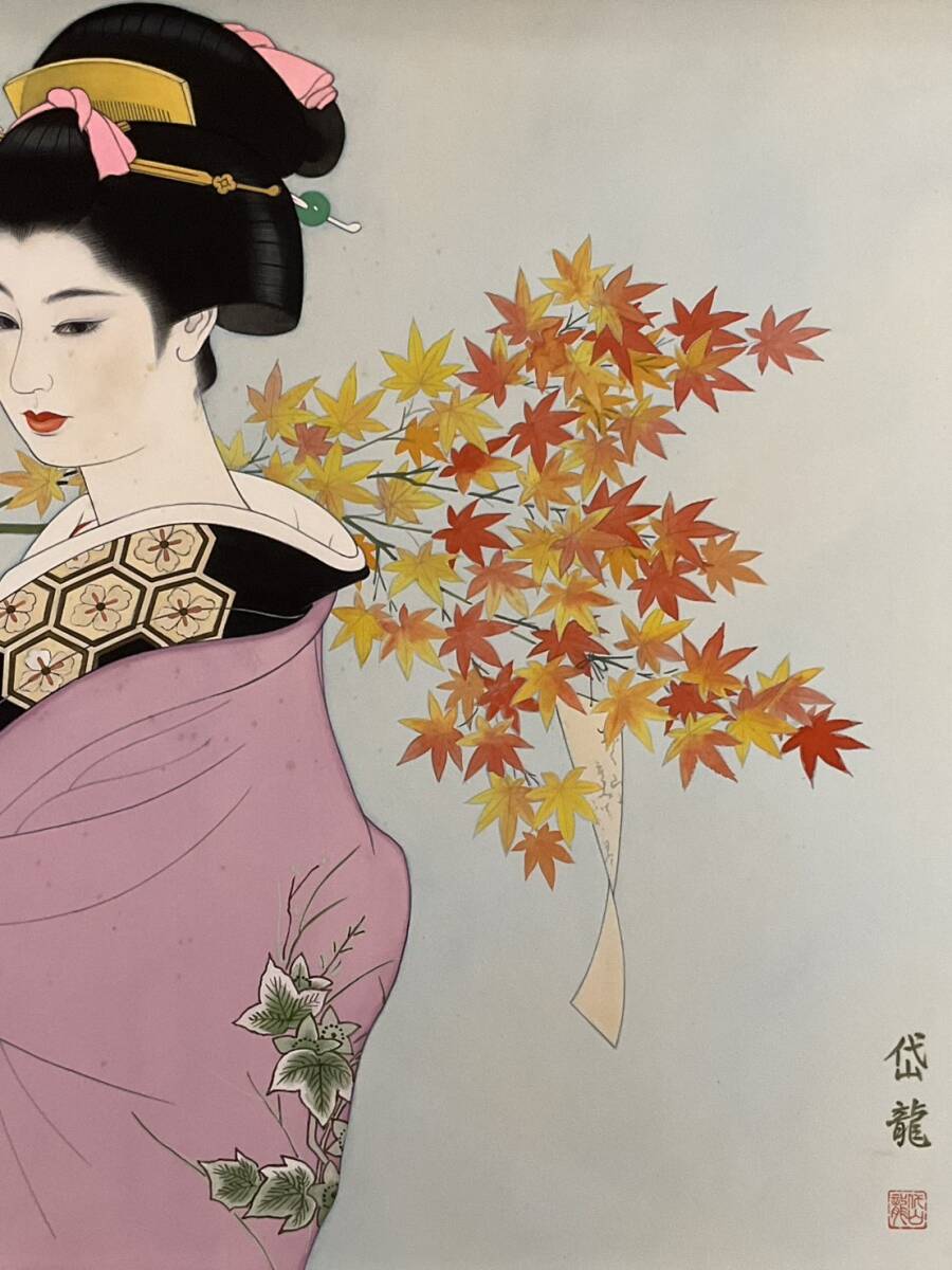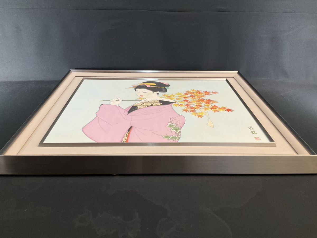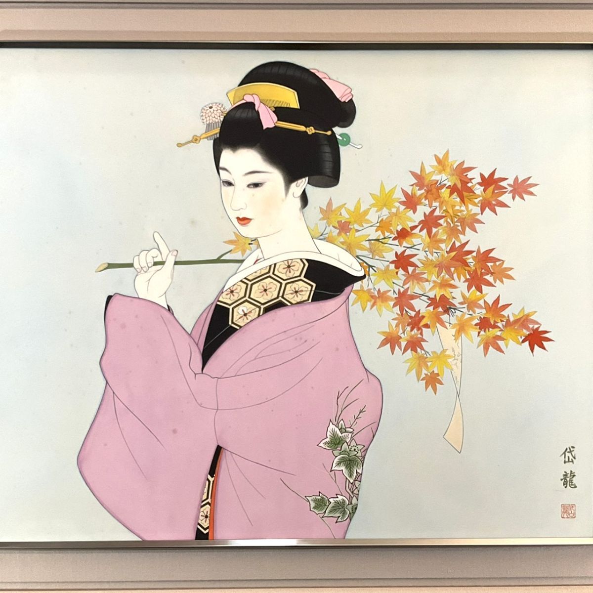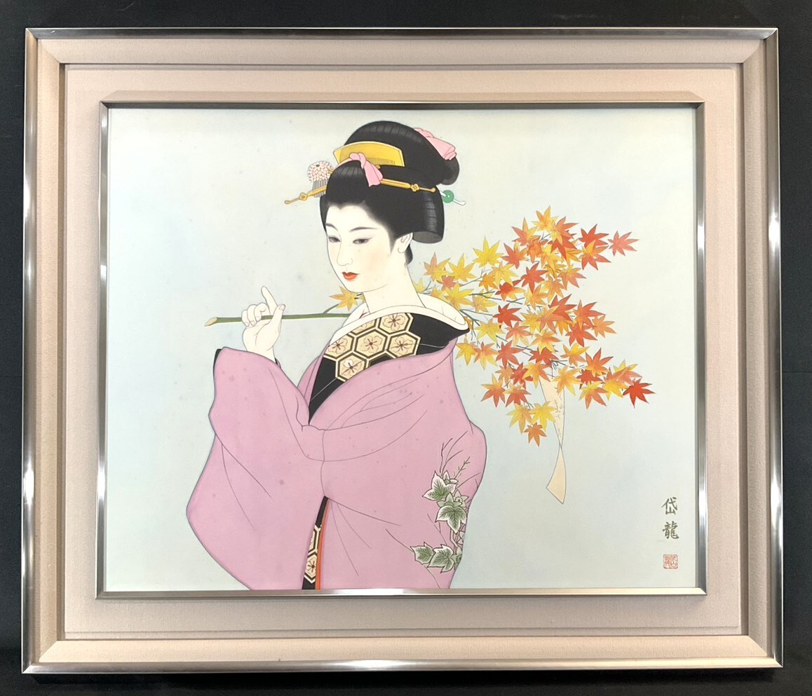 真作■日本画■渡部岱龍■ 『紅葉狩』■共シール ■和美人逸品■師:志村立美・大山忠作■額付絵画