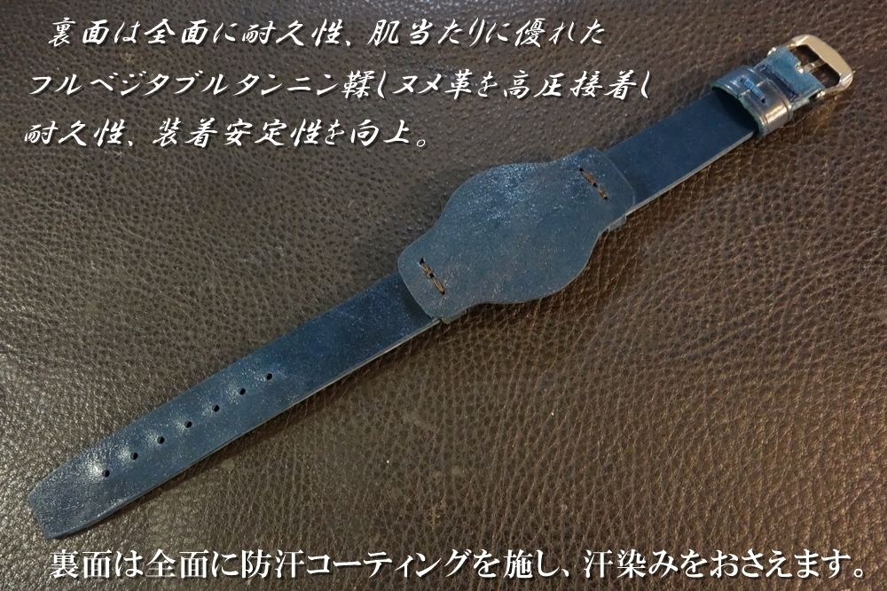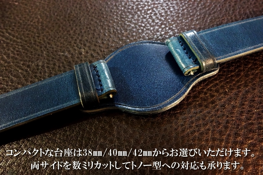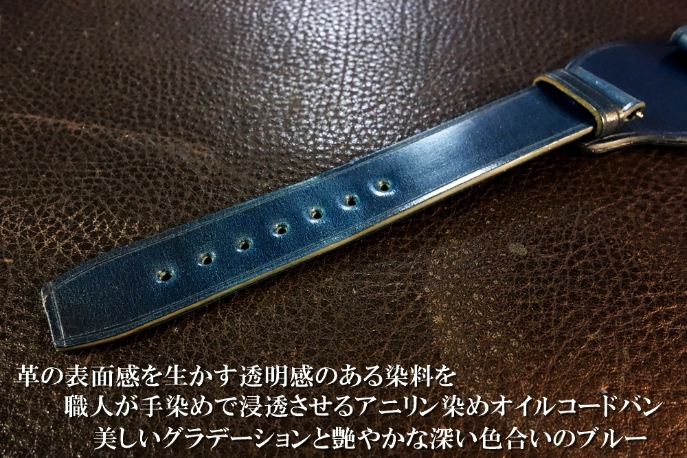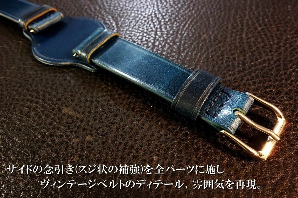 | ◆台座付VINTAGE BELT◆最高品質国産アニリン染めオイルコードバン Custom Order(台座SIZE/BUCKLE COLOR) 19mm INDIGO BLUE 日本製 受注生産(納期10日前後) |