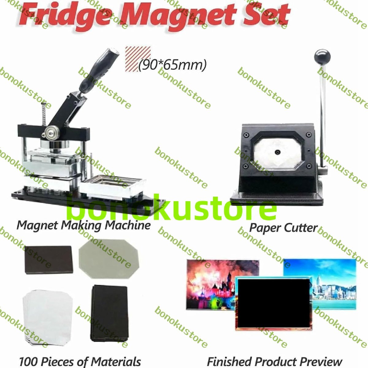 冷蔵庫用マグネットバッジメーカーキット、3.5x2.5インチボタンバッジマシン、ペーパーカッターと100個の部品付き、使いやすく、自宅、オフィス、ギフトに最適