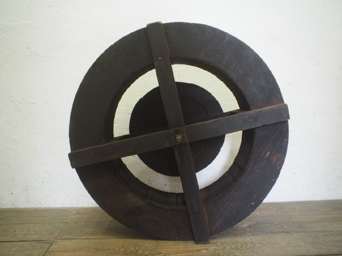 タ荷R0275◆直径78cm◆アンティーク◆味わいのある大きい水車のオブジェ◆テーブル 天板 素材 無垢板 DIY 古家具 古道具 レトロM(ヤC)庭