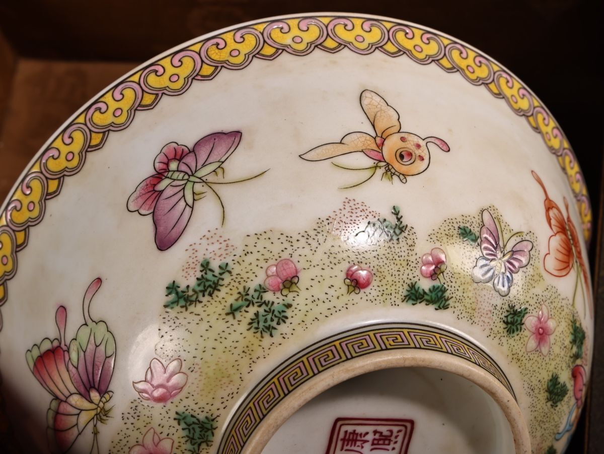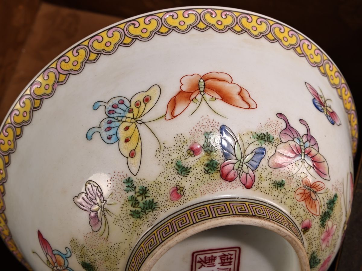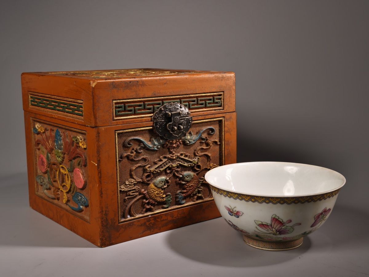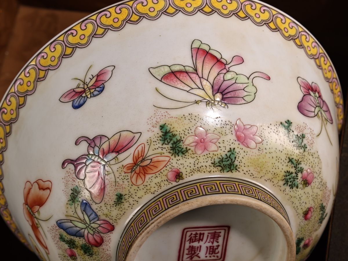 【永】清時代 康熙御製 粉彩花蝶紋碗 漆盒 古陶磁器 陶芸 皿 中国陶瓷器 唐瓷 置物擺件 古美術品 古賞物 収集 旧家蔵出 中国唐物 A124