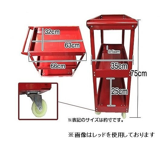 3段 ツール カート キャスター付き 工具 台車 ツール ワゴン ボックス 工具箱 入れ 収納 移動式 ワーキングカート 赤 レッド