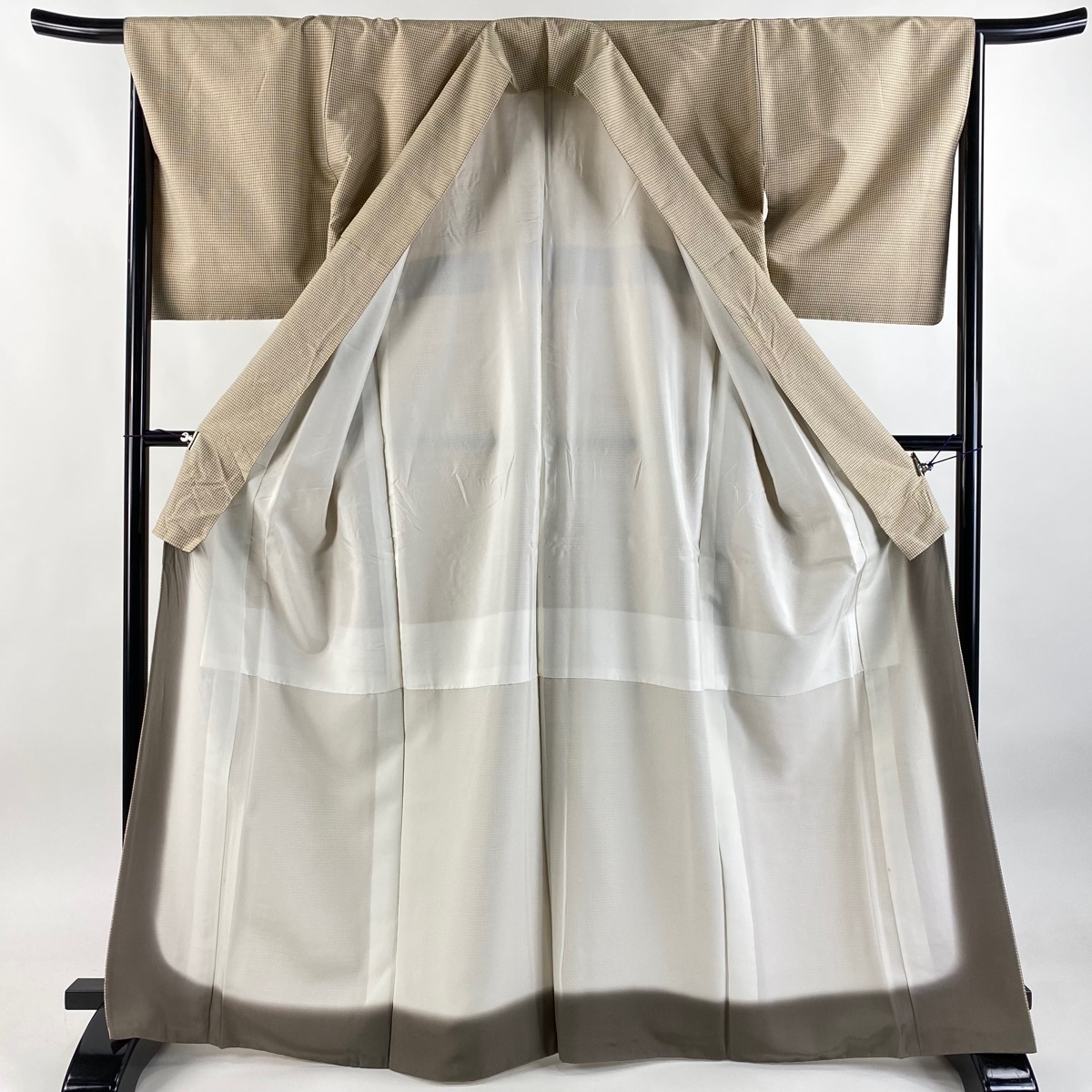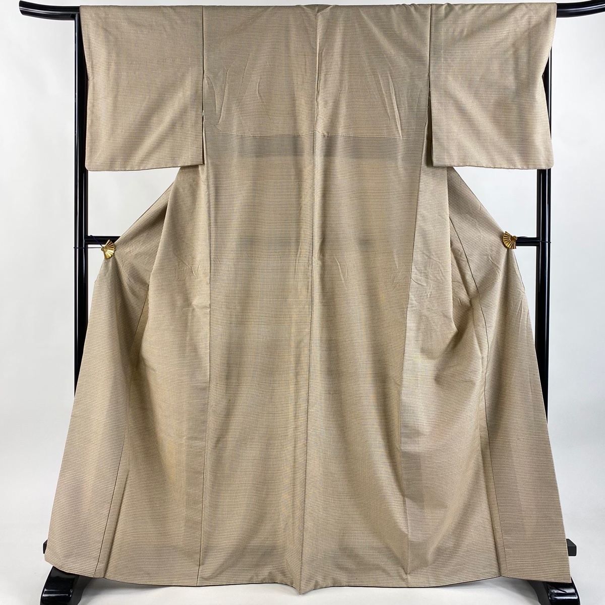 | 紬 秀品 格子 ベージュ 袷 身丈167 裄丈66.5 M 正絹 【中古】 |