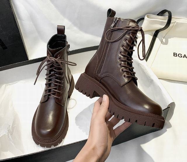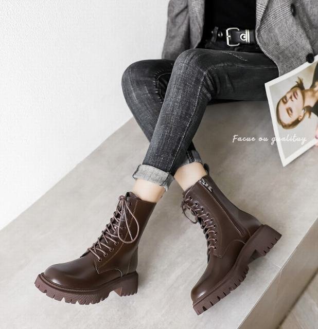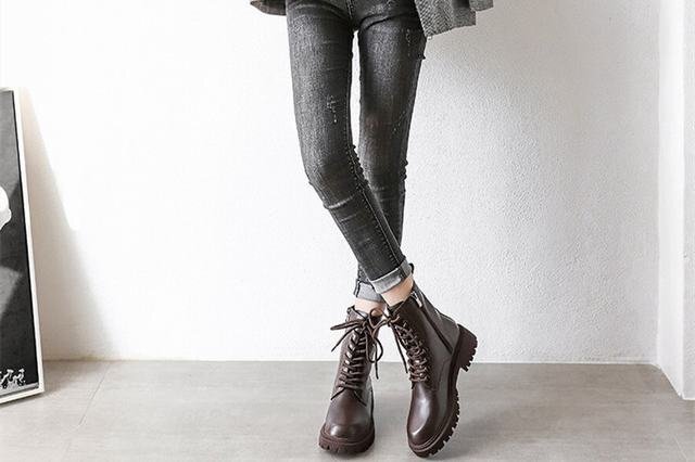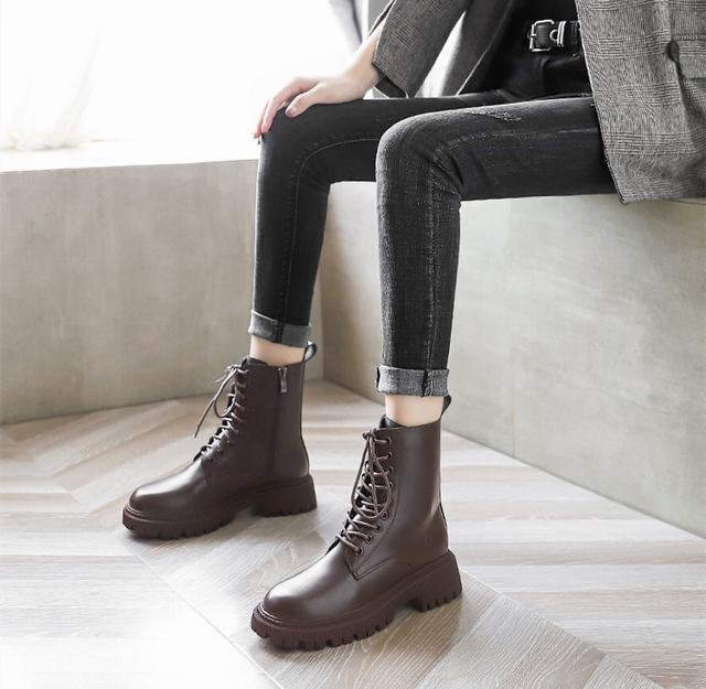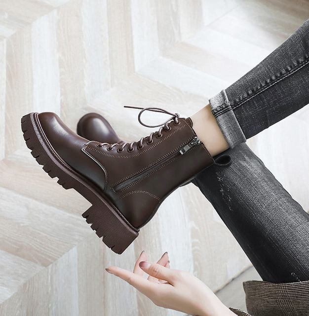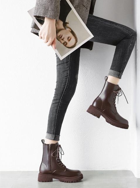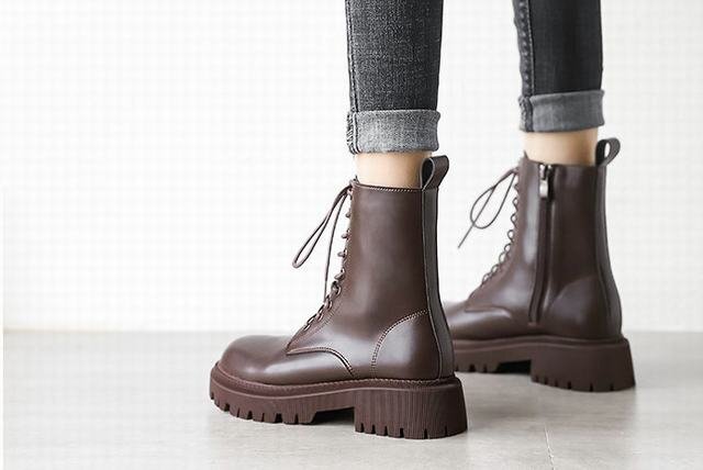 ブーツ レディース 編み上げブーツ サイドジップ 痛くない 疲れない シューズ 春秋 軽量 薄め 靴 レースアップ ブーティ ブラウン 23cm