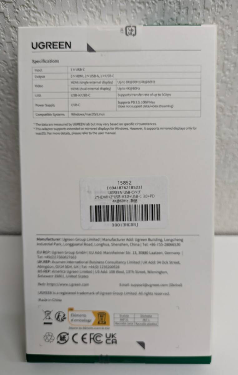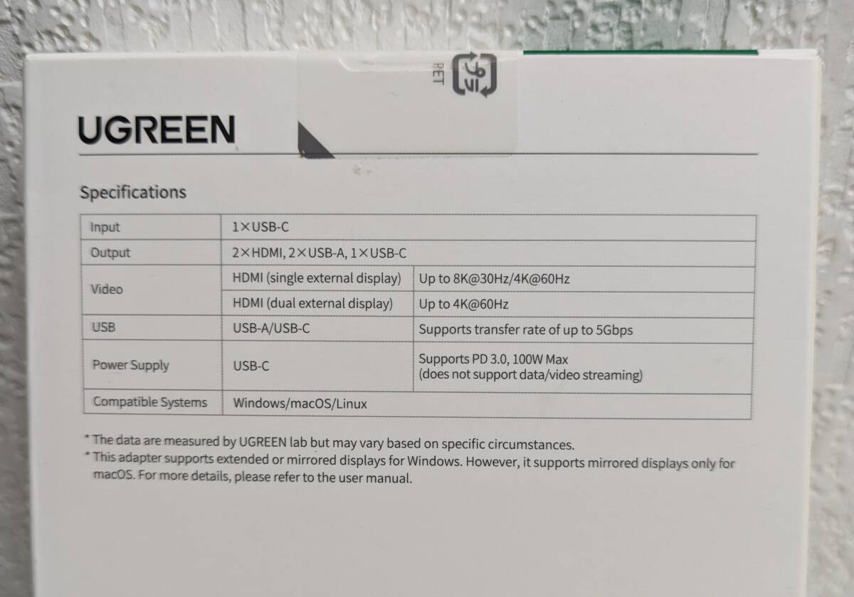 UGREEN Revodok 206 6 in 1 USB Cハブ 2*HDMI出力 ドッキングステーション 4K@60Hz 単一出力8K@30Hz 100W PD急速充電 5Gbps高速データ転送