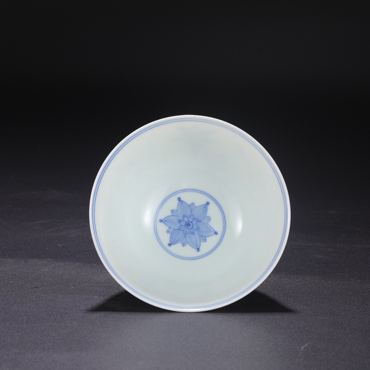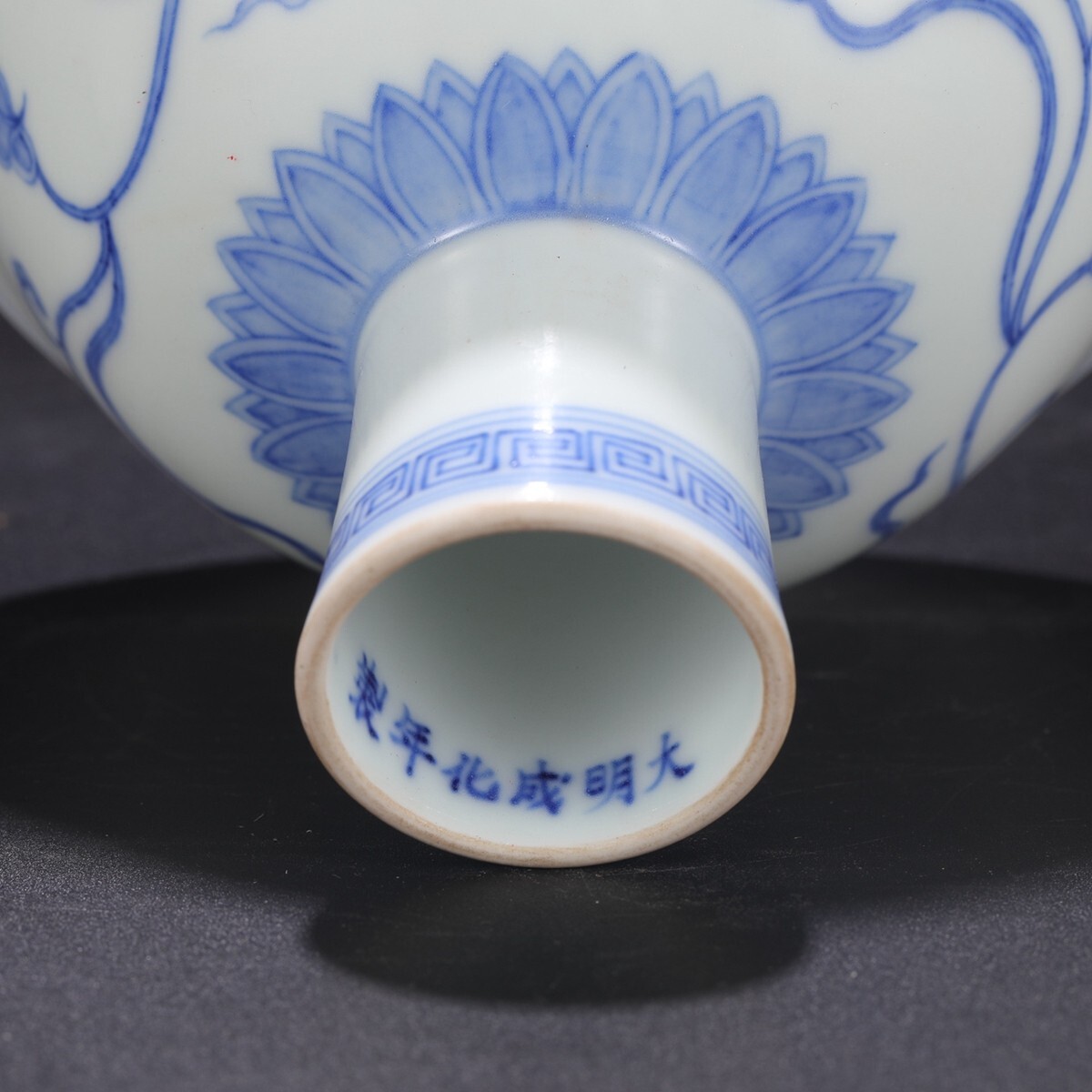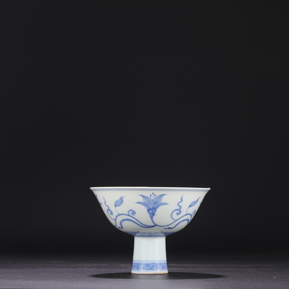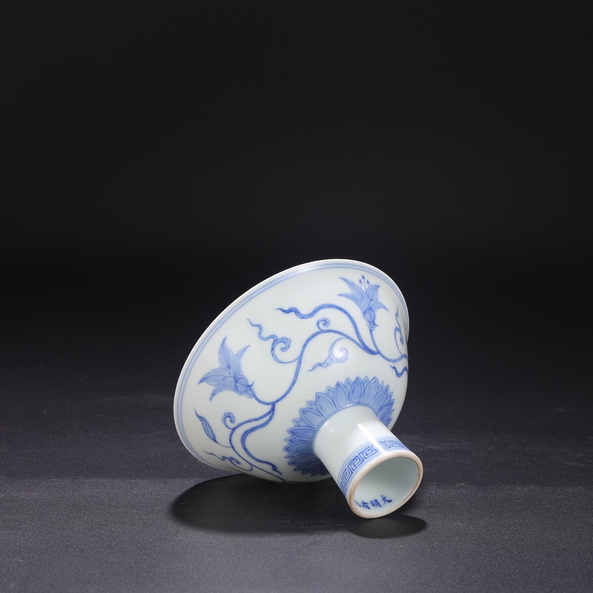 【瓏】陶磁器 青花花卉紋 高足碗 大明成化年製 染付 置物擺件 古賞物 古美術 陶芸 蔵出
