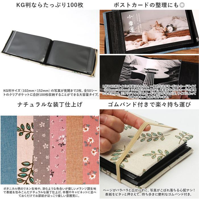 | 商品説明 | ・・思い出のフォトを温かみのあるブックにひとまとめ!KGサイズの写真が最大100枚収納できる「大容量KGサイズポケットアルバム」 ・【気軽に手に取れるブックサイズ】 ・ご家族やお子さまの笑顔のフォトを、小説のように気軽に手に取って眺められるブックサイズにギュッと凝縮。 ・【整理が簡単!ポケットタイプ】 ・クリアアイプのサイドインポケットにサッと写真が差し込める!手軽でキレイに写真が整理できるポケットタイプ。 ・【KG判ならたっぷり100枚】 ・KG判サイズ(102mm×152mm)の写真が見開きで2枚、全50シートのクリアポケットに合計100枚収納することができる大容量タイプ。 ・【ポストカードの整理にも◎】 ・L判やKG判サイズの写真はもちろん、一般的なはがき・ポストカードサイズ(100mm×148mm)にも対応しているので、年賀状やポストカードの整理にもオススメ。(※オリジナルポストカードや絵はがきなどは、サイズによって収納できない場合がございます。) ・【ナチュラルな装丁仕上げ】 ・ボタニカル柄のリネン生地や、滲むような色合いが優しいメランジ調生地で表紙を包みこんだナチュラルな装丁仕上げ。本棚やキャビネットに並べておくだけでお部屋がほっこり優しい雰囲気に。 ・【ゴムバンド付きで楽々持ち運び】 ・ページがパラパラと広がらずに、写真がこぼれ落ちる心配ナシ!表紙をピタッと押さえて、持ち歩きに便利なゴムバンド付き。 ・【思い出のフォトをスッキリ整理】 ・ライフイベントのたびに増えていくたくさんの写真も、豊富なポケット数でスッキリ整理♪お気に入りの柄のアルバムに、記念日やイベントごと、旅行のフォトなら旅先ごとに、大切なフォトの分類作業がグッと楽に。 |