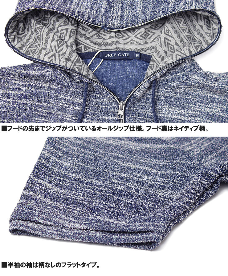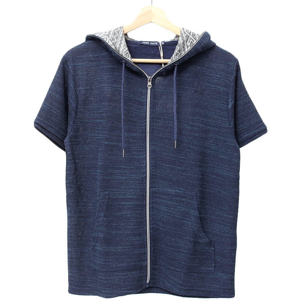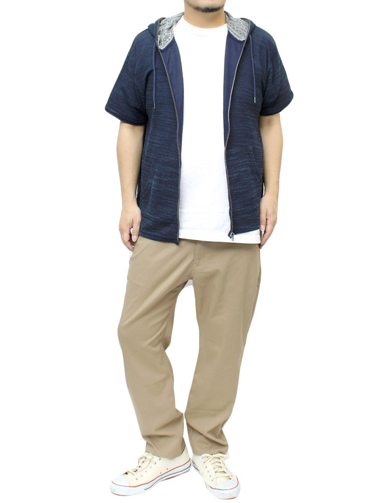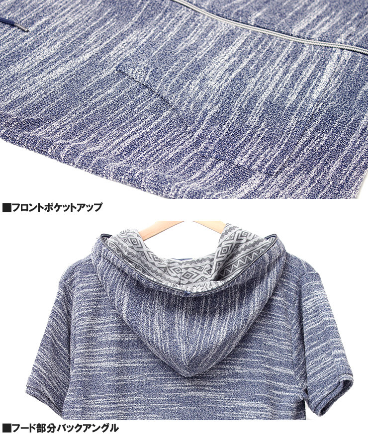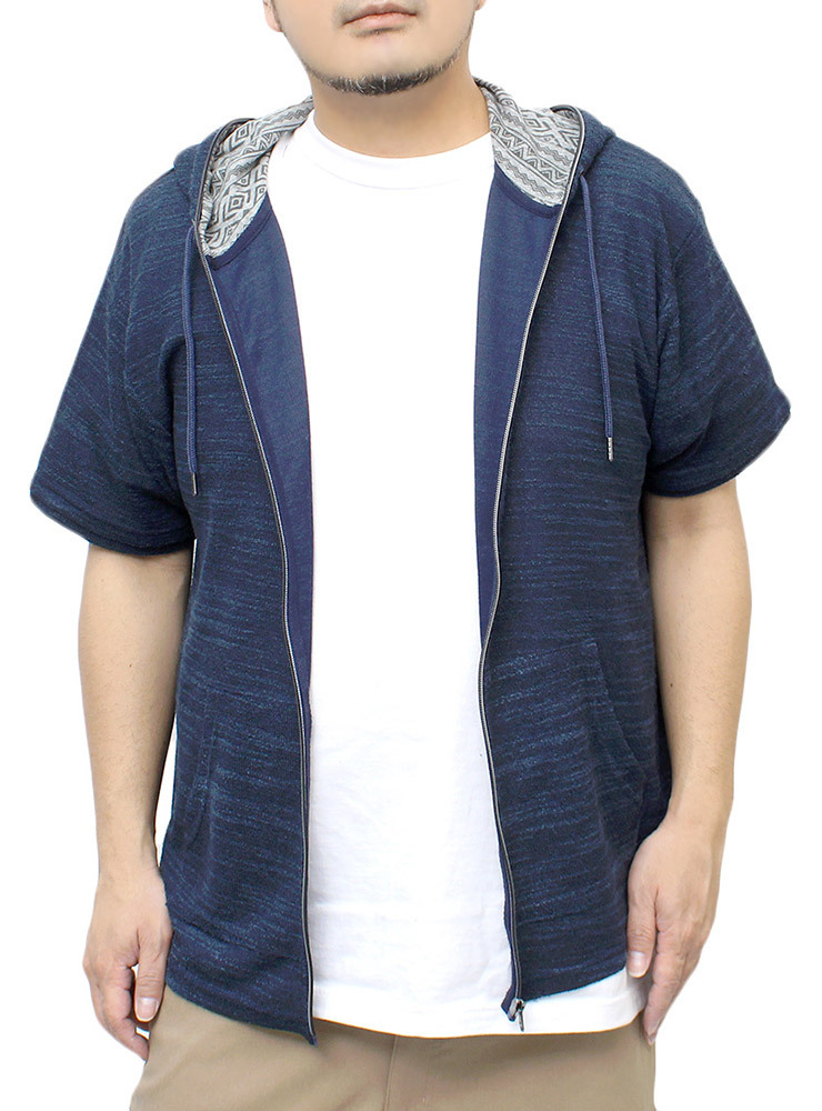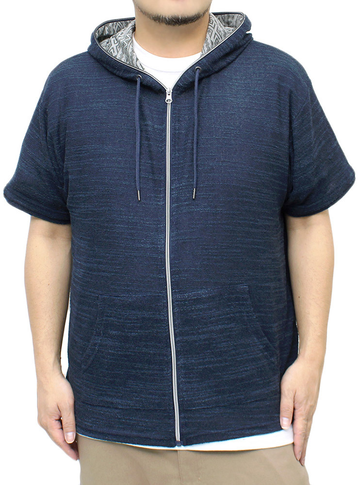 | 商品名 | 【新品】 2L ネイビー半袖 パーカー メンズ 大きいサイズ ジップアップ 七分袖 半袖 スラブ サマーニット 薄手 ジャガード柄 切替 ジャケット |