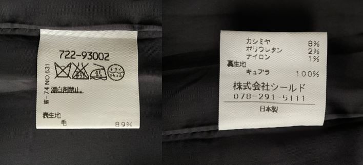 表地:ウール:89% カシミア:8% ポリウレタン:2% ナイロン:1%