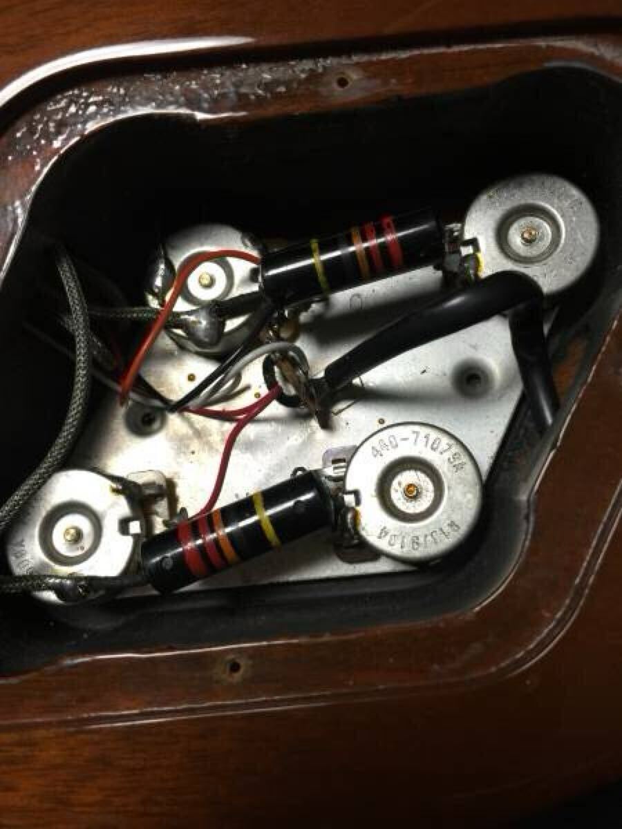 | 商品紹介 | Sprague Bumble Bee 0.022uF/400V フィルムコンデンサー中古品になります。(オイルコンデンサーではありません。) 1950年代にGIBSONのギターにトーン用コンデンサーとして使用されておりました。 実測値(0.027~0.03uF未満)の静電容量の個体になります。 絶縁は良好ですので、使用上は問題ありません。 サウンド面では説明が不要な程、優れたコンデンサーです。 PUなどの交換よりも先にコンデンサーを交換してトーンバランスを改善することをお勧めします。 現行品のギターも木工部分は各メーカーがこだわりを持って製作しており、かなりハイレベルな仕上がりとなっております。 PUも色々と研究されてビンテージトーンの再現などが行われております。 ただしコンデンサーだけは汎用品を使用しており、せっかくの出音が生かされていないのが現状です。 レプリカコンデンサーなども製作されておりますが、中身は現行の電子部品ですので、サウンド的にはビンテージコンデンサーとは程遠いものになります。 まずは比較的安価なコンデンサー交換からギターをカスタムすることをお勧めします。 トーン10で使用していてもコンデンサーは音質への影響を与えておりますので、トーンを絞らない方でもトーンニュアンスの変化に気づくと思います。(言葉で音を表現するのは難しいのですが、リッチなトーンに変わります。歪み系では倍音成分が豊富になり、心地良いサウンドに変わります。) GIBSON製のギターだけではなく国産ギターなどに取り付けてもトーンが良くなります。(私も激安国産ギターに取り付けてますが、かなり使えるトーンに変化しました) リード線が短めですが、レスポールなどへの取り付けは大丈夫だと思います。(取付け写真参考) ご希望によりリード線を付け足します。 取り付けに自信のない方はこちらでギターに取り付けますのでご相談ください。(特殊なギターやセミアコ、フルアコは取り付け作業出来ません。) |