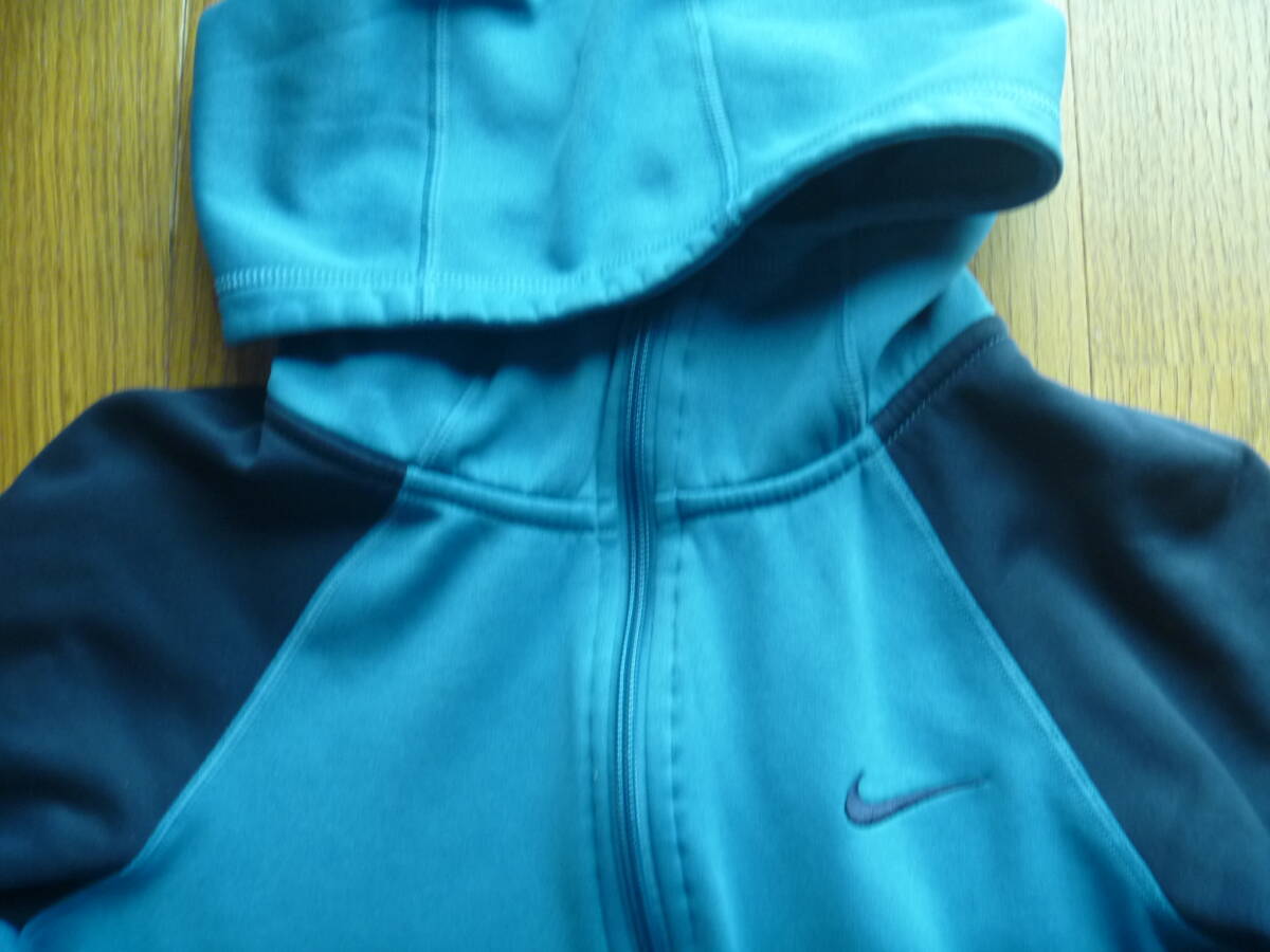 NIKE THERMA FITで100% POLYESTERでサイズは肩幅 45cm, 袖丈 52cm, 着丈 55cm, 胸囲 80cm, 中古品で神経質なお方はご遠慮下さい。