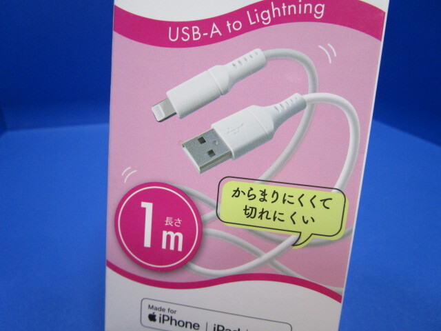 オズマ USB-A to Lightning ライトニング シリコン素材で超やわらかくて切れにくい タフケーブル 1m ホワイト IHUDLSK100W MFi認証取得