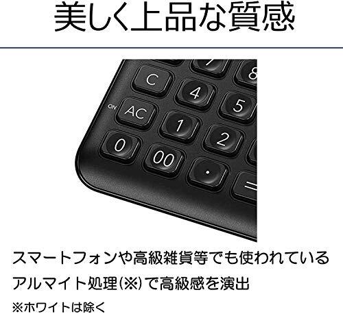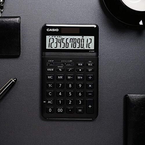 電卓ブラック/183.5×109×10.8(mm)/JF-S200-BK-N・Color:ブラック・パッケージ個数:1・優雅に美しく。洗練されたスマートデザイン。・薄型フォルムでスタイリッシュなジャストタイプ。・【桁数】12【大きさ(奥行×幅×高さ)mm】183.5×109×10.8【質量(g)】150・【税計算】消費税の税込・税抜・税額をそれぞれ計算できます。設定税率は変更可能です。・【時間計算】時間の四則計算ができます。「勤務時間計算」「時給計算」等に便利です。