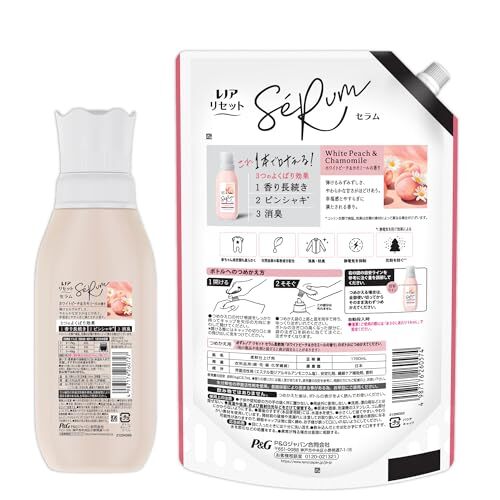 パッケージ:ベージュ/-/なし・パッケージ個数:1・「レノアリセットセラム」は、よくばり柔軟剤。シワピンシャキ*・消臭・香り長続き *コットン衣類で検証。効果は衣類の素材によって異なる場合がございます。・傷んだ衣類はシワ、ニオイが付きやすい。レノアリセットセラムなら、洗えば洗うほど衣類のセラム(美容液)が浸透、衣類を修復。・トップ:ホワイトピーチ。ミドル:カモミール / マグノリア / ペアー。ラスト:アンバー / ウッド・生まれたての恋。弾けるみずみずしさ、やわらかな甘さがほどけあう。幸福感とやすらぎに満たされる香り。・赤ちゃんの服もやわらかく