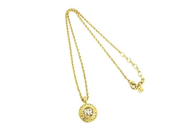 ■美品■ NINA RICCI ニナリッチ ラインストーン ロゴモチーフ ネックレス ペンダント アクセサリー レディース ゴールド系 DF7674