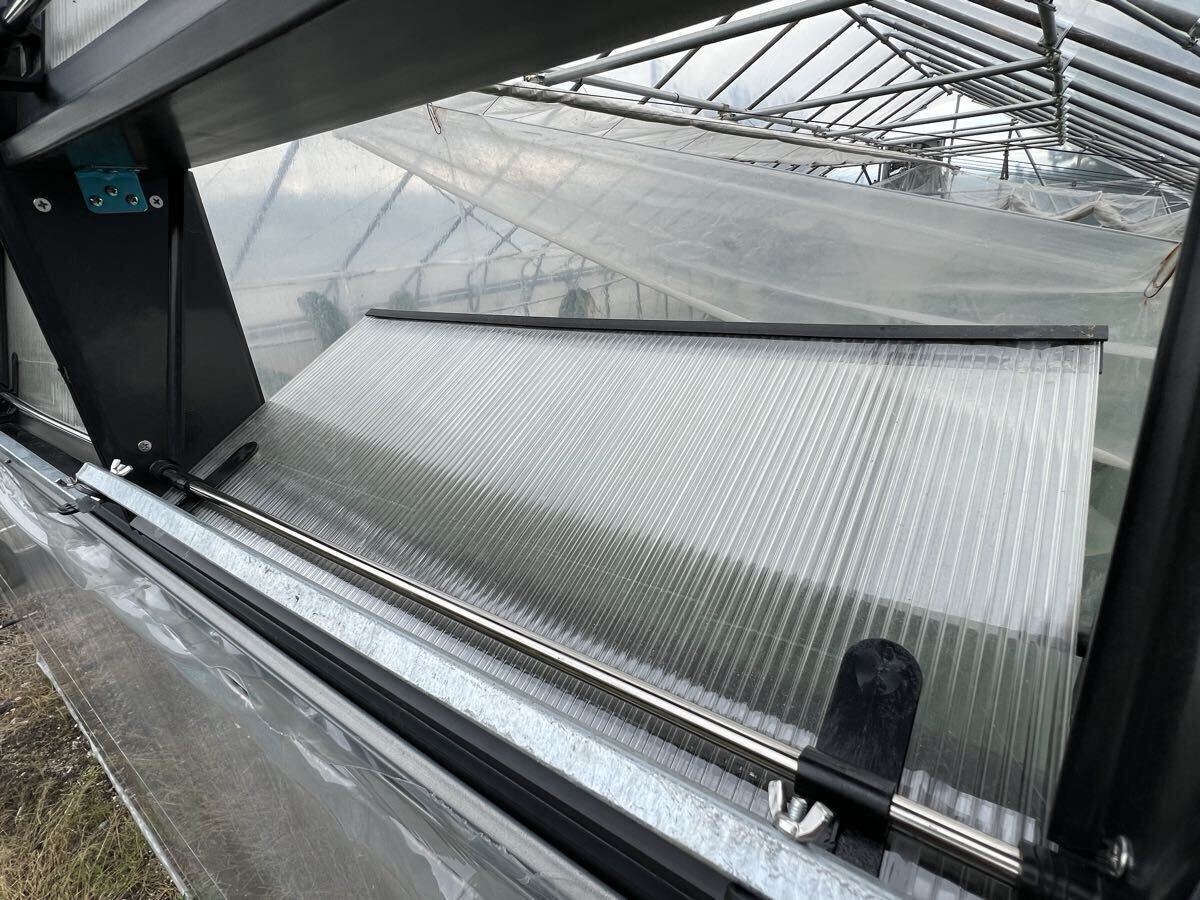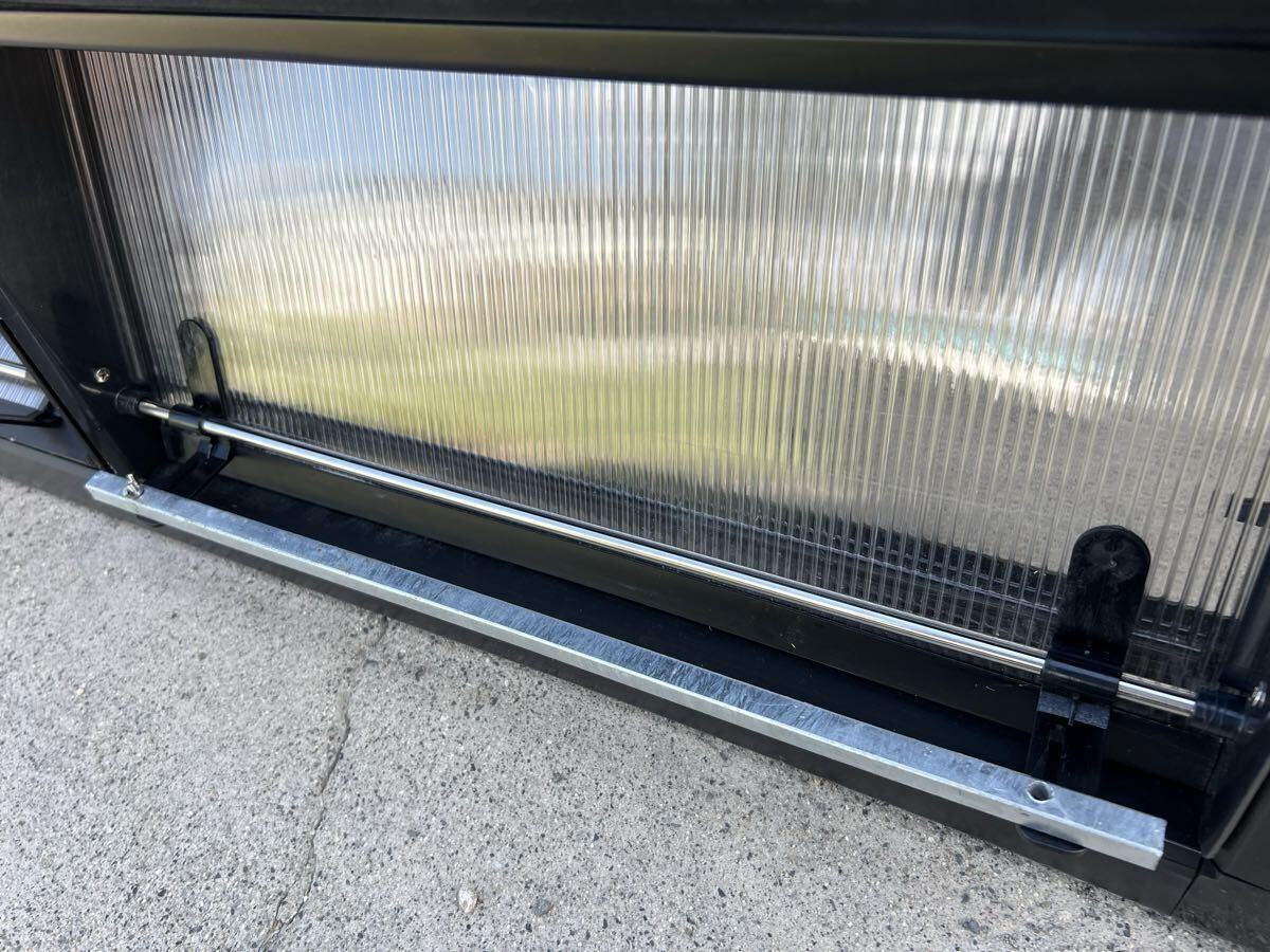 写真4.7枚目に大きく写っている銀色の重りの位置を変えてテコの原理で開閉する窓です。