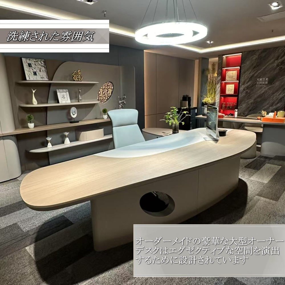 ![]() ☆豪華!大型オーナーデスク パソコンデスク オフィスデスク ワークデスク 社長机 社長デスク エグゼクティブデスク プレジデントデスク PCデスク ☆ワイド320㎝ 奥行235㎝の超大型のエグゼクティブデスクを驚きのプライスでご提供! ☆豪華!大型オーナーデスク パソコンデスク オフィスデスク ワークデスク 社長机 社長デスク エグゼクティブデスク プレジデントデスク PCデスク ☆ワイド320㎝ 奥行217㎝の超大型のエグゼクティブデスクを驚きのプライスでご提供! ☆オーナーデスクの中でも特に豪華で大型なものがお求めの方におすすめです ☆当デスクは、機能性とデザイン性を兼ね備えた最新モデルで、ビジネスシーンやホームオフィスに最適です ☆最新のオーナーデスクをお探しの方には、この豪華で大型デスクがピッタリです ☆このオーナーデスクの最大の特徴は、100ボルト電源が内蔵され、ノートパソコンやスマートフォンなどの最新機器との接続が容易になり、ビジネスシーンでの利便性が大幅に向上します ☆ビジネスの場で活躍する経営者やリーダーにふさわしいプレジデントデスクをぜひ一度ご検討ください。 ※受注生産品で納期に関しましてはお問い合わせ願います※ ☆オーダーメイド品:約4~6週間後にお届けとなります ■製品寸法[mm] 幅(W)3200・奥行(D)2350・高さ(H)750 ![]() | |