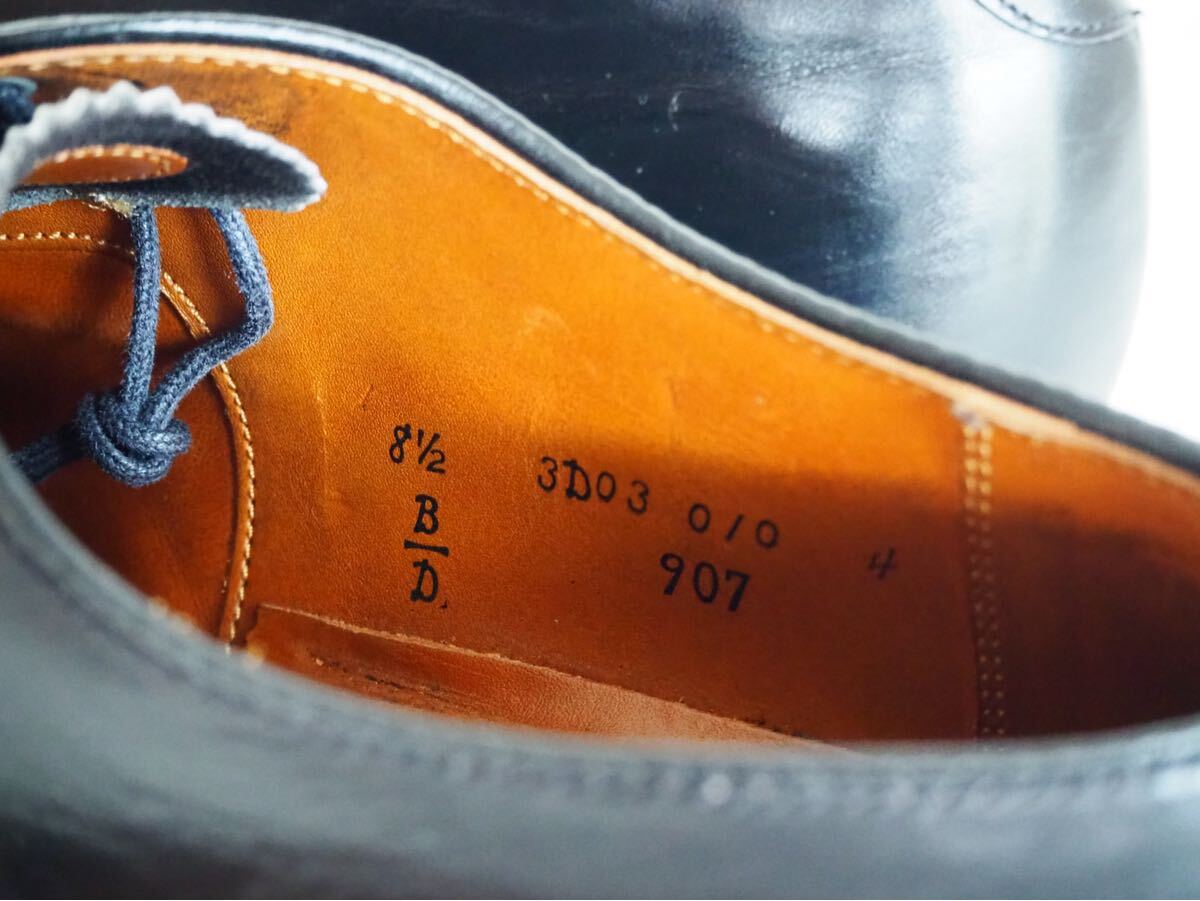 オールデン定番907ストレートチップだ。一切の装飾が無く、ステッチワークと丸みを帯びたトゥーシェイプ・漆黒のカラーリング・ハンプトンラストを使用する事で、唯一無二のオールデン・クラシックスタイルを体現している。まさに、オールデンの隠れた名作といえよう。