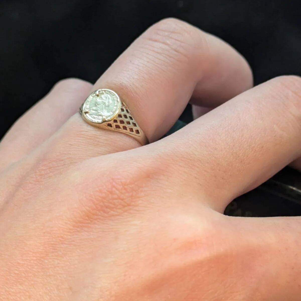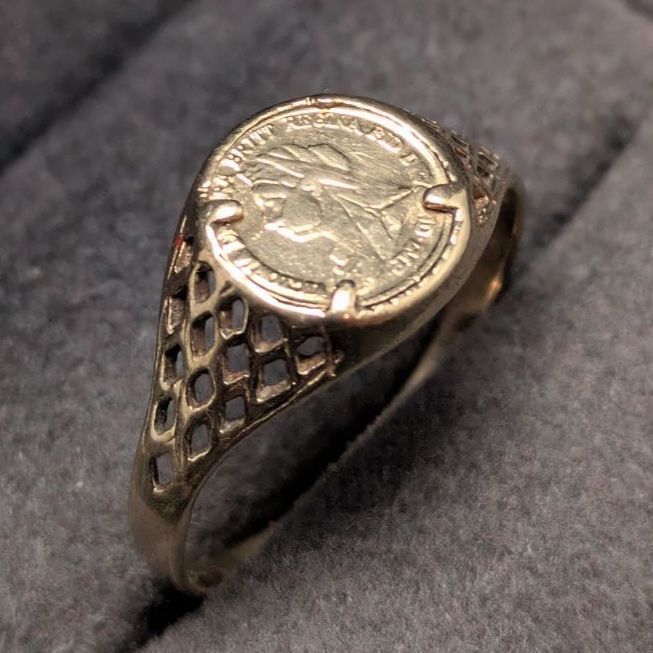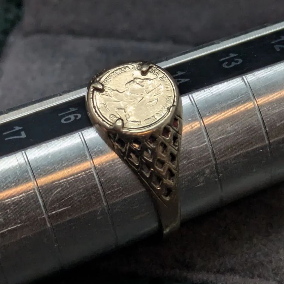 1991年 英国 バーミンガム製 9金 9K クイーンヴィクトリア コインリング MSJ 刻印 15号 ヴィンテージ イギリス製 アンティーク 指輪 メンズ