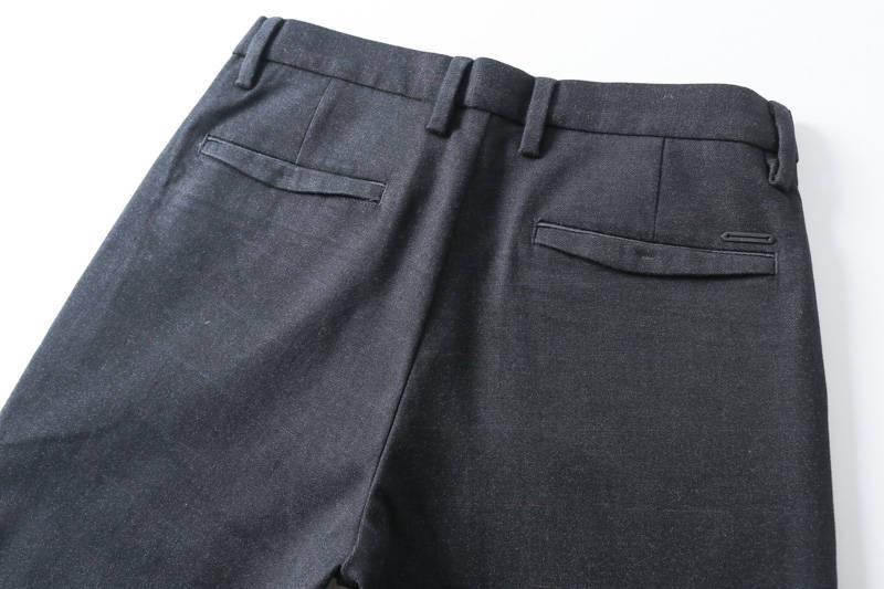 シンプルで洗練されたノータックデザインのスタンダードスラックス。ほどよいゆとりと立体的なシルエットで、脚のラインをすっきりと美しく見せます。