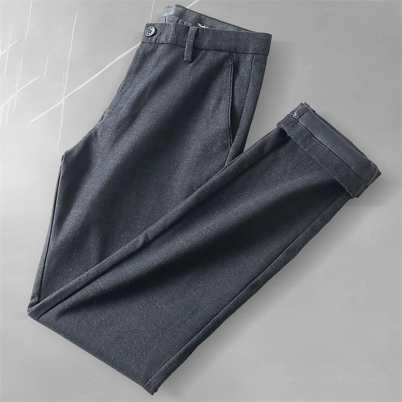 A216-XL灰色 スラックス メンズ ストレートパンツ ピーチスキン ノータックパンツ 新品 快適 厚手 秋冬 ビジネス ビジカジ カジュアル パンツ