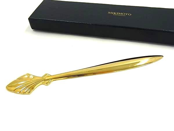 ■美品■ MIKIMOTO ミキモト 本真珠 アコヤ真珠 パール 約3mm ペーパーナイフ ステーショナリー レディース ゴールド系 DI2725