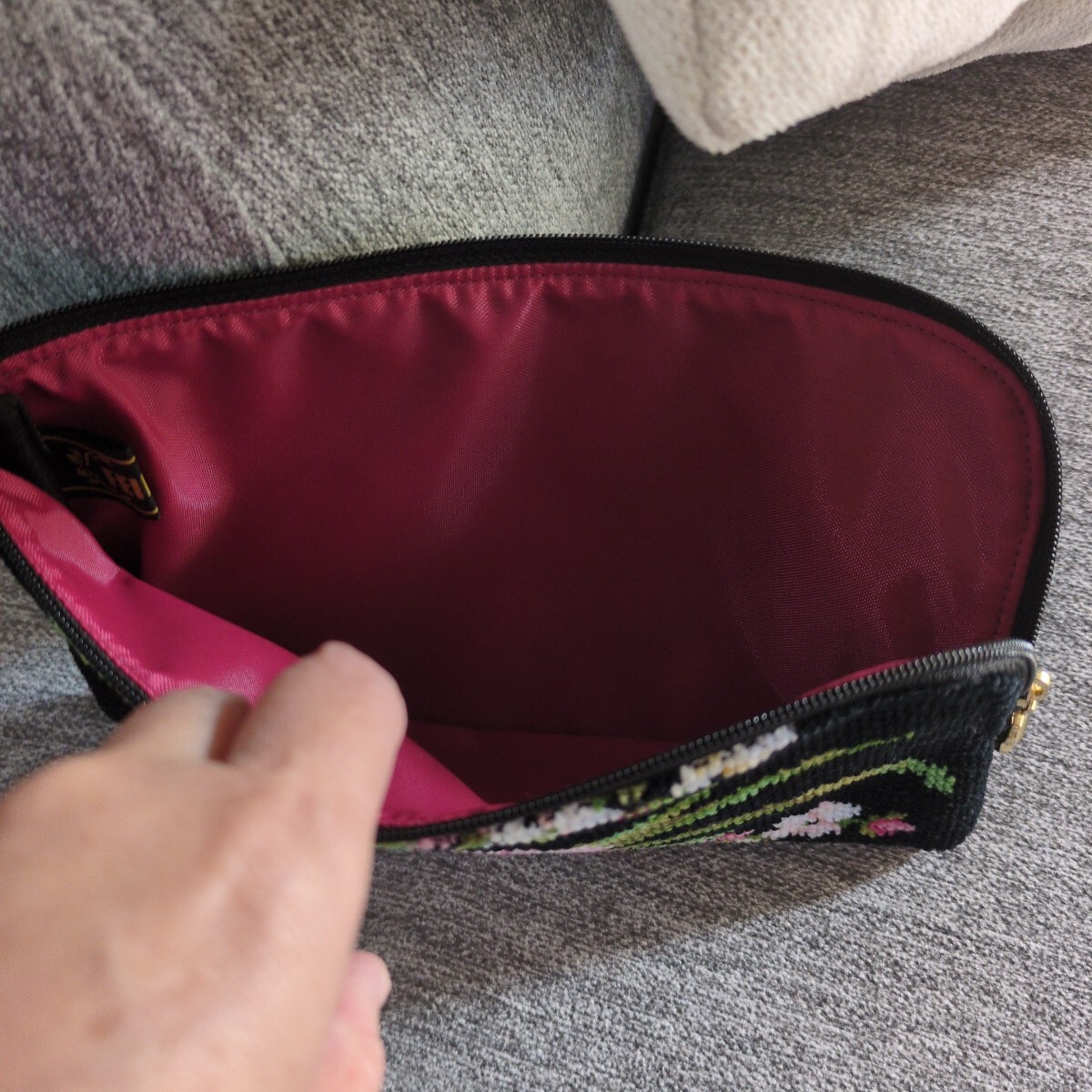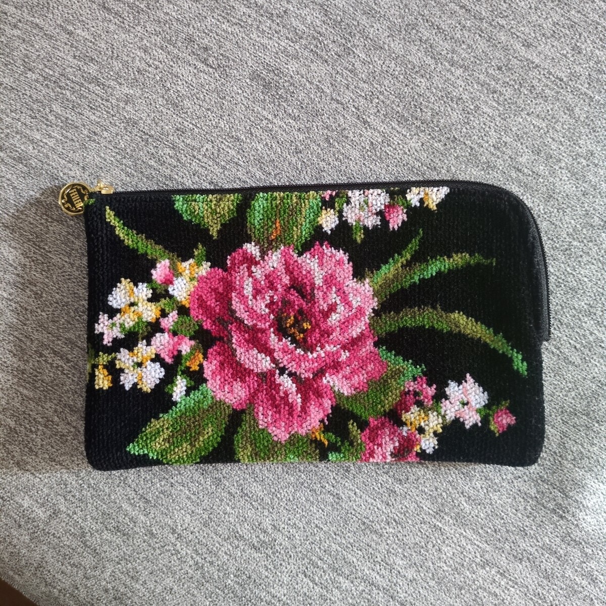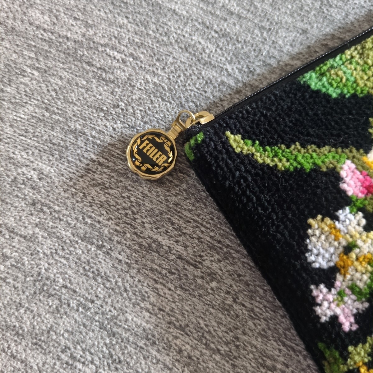 【未使用】FEILER/フェイラー★黒 花柄 ポーチ L字ファスナー シェニール織り です。