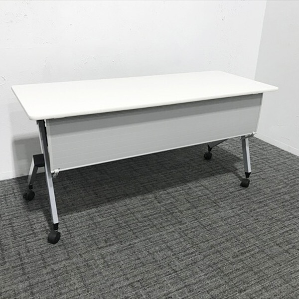 ■取り扱い番号 TF-876025B ■仕様 メーカー : イトーキ 製品名 : フラップ式会議テーブル HX 幕板付 THP-156X1-W9 色素材 : ホワイトW 外寸 : 幅1500mm 奥行き600mm 高さ720mm ランク : Bランク ■特徴 棚無 天板:抗菌メラミン化粧板 ポリジン加工 脚:スチールパイプ粉体塗装仕上 シルバーメタリック ネスティングピッチ:118mm 少ない力で簡単に折りたためる折りたたみテーブル。平行スタッキングやアジャスター機構付キャスターなど、収納性・動機性に配慮しています。 |
