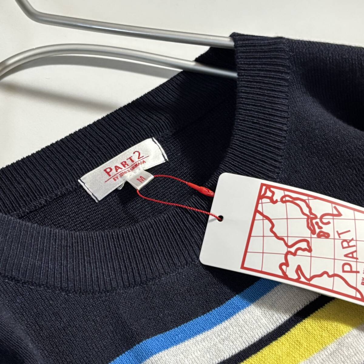 新 ジュンコシマダ PART2 パート2 サイズM // 濃紺系多彩色ボーダー ニットワンピース ⑥