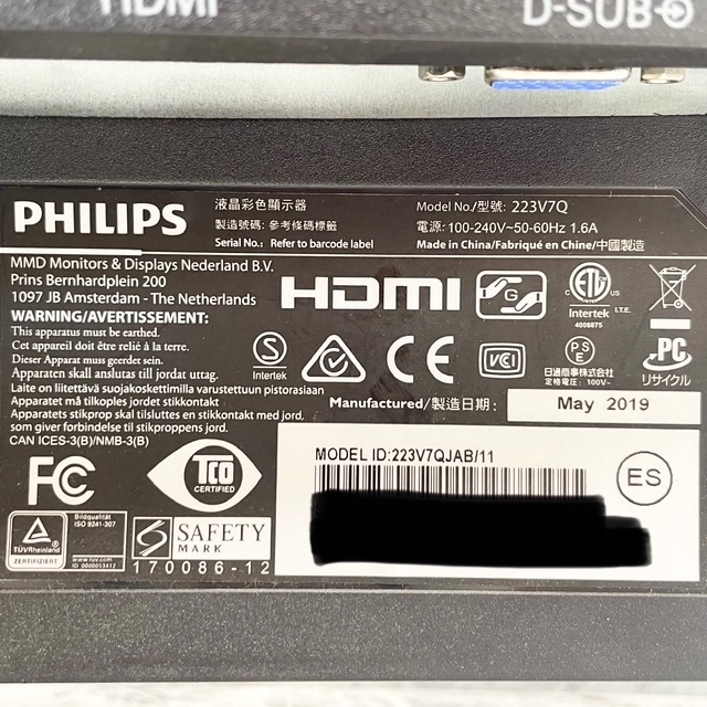 | ▲▲必ず注意事項をお読みになりご了承後、入札をお願い致します▲▲ PHILIPS 223V7Q 21.5インチ ワイド 液晶ディスプレイ 最大解像度:フルHD(1920x1080) パネル種類:IPS 表面処理:ノングレア(非光沢) 入力端子:D-Subx1/HDMI1.4x1/DisplayPort 付属品:なし※(電源コードは付いていません) 動作確認済み。 1日動作確認しましたが問題なく動作しました。 中古品の為スレ、キズなどあります。 詳細・状態は画像をご確認ください。 ドット抜け、傷などにつきましては返品対象外となります。 現状品となります。 ご理解いただける方のみ、ご入札ご検討下さい。 上記項目以外は未確認ですので、現状品ノークレームノーリターンでお願い致します。 ★注意事項★ ★商品について★ ■商品は中古品のため、傷や落としきれない汚れがあります。 ■写真に載せきれていないキズや汚れがあります。 ■付属品は写真に映っている物で全てとなります。 ■ACアダプタ、電源コードなどが付属している場合、おまけとなりますので、品質の保証、動作保証などできません。非純正の物が付属の場合もおまけとなりますので、気になる方は純正品のご購入をお願いいたします。 ■パーツの入札に関しましては必ず型番ご確認の上入札ください。 ■細部に渡る細かなチェックはできておりません。ネジや部品の欠品、傷、割れの記載漏れはご理解の上、ご入札をお願い致します。 ※写真がすべての情報です。気になる部分は必ずご質問ください。 ※落札後の質問及びキャンセルはお受けできません ■商品の傷や液晶ムラなどは個人差がございます。ご心配な場合は必ずご質問ください。 ■パソコンのリカバリ(初期化)に関しまして インストール済の品は(OSを新規にインストールした商品となります) ※その為リカバリディスクや初期化の領域はありません リカバリ済みの品は(メーカー指定の方法にてリカバリした品です) ■キーボードの動作は全キー未確認です。 気が付いたのは記載させて頂きますが現状品となります為キーボードの動作保証は出来かねます。 ■DVDドライブ等の動作はデバイスマネージャーにて認識確認のみとなりディスクの起動は未確認となります。 ■落札後の動作方法・接続方法などのサポートはお受けできません。 ■ジャンク品、現状品に関しまして 部品取品とお考え頂き商品説明に記載してる情報までの確認です。 他の不具合がありましても一切保証はできません。 ■商品の状態、キズや汚れ等、画像と現品との個人的主観による相違などや誰が見ても、付属していると思った、説明に書いてないからあると思った、無い とは書いていない等の自身の憶測での判断によるクレームや返品はお受けできません。 ■状態など確認し記載しておりますが傷やヘコミ・その他を見落としがある可能性があります。 ■中古品の場合、到着後起動できない場合がまれにあります。 保証が出来ない為ジャンク品の認識でお願い致します。※返品・返金・交換は承れません。 ★お取引について★ ■ご連絡無い場合はキャンセルとさせて頂きます。 この場合、非常に悪いの評価となりますのでご注意下さい。 ■落札後のキャンセルは落札者都合でのキャンセル、評価が「非常に悪い」がつきますので予めご了承の上入札をお願い致します。 ■イタズラ入札が多発しておりますので新規さま、非常に悪いがある方、事前に悪い評価がある方のご入札頂きましても削除させていただく場合があります。 ■記載事項を読まれていないと思われるクレームは評価にて非常に悪いの評価とさせて頂く場合がございます。 ■ストアとは異なりますので完璧な物をお求めの方・神経質な方は入札をご遠慮下さい。 ★お支払いについて★ ■落札金額+送料のみのお支払いとなります。 ■落札日より3日以内の入金.決済をお願いいたします。※過ぎる際は事前のご連絡をお願い致します。 ■かんたん決済の期限が過ぎた際は落札者様都合によりキャンセルとなります。※非常に悪いの評価となりますのでご注意下さい。 ■手数料は落札者様でご負担ください。 ★発送について★ ■運送会社の指定は出来ませんのでご了承ください。 ■電話番号表示の仕様変更により非表示となりました為、送り状登録は「00-0000-0000」となります。 発送に電話番号が必要な場合は、取引メッセージよりご連絡ください。 尚、営業所止め、ヤマト家財便は電話番号が必要となりますので、ご連絡いただきますようお願い致します。 ■定形外等の記載の無い方法は対応致しません ■おまとめはおまとめ申請がされた場合のみとなります。※申請無しはお受けできかねます。 ■ディスプレイ、モニター類のおまとめ発送につきましては、運送時の破損のリスクが生じる為一切の責任を負いかねます。 ■配送料金の変更は物の大小に関わらず変更できません、入札金額+配送料をご確認ください。 ■発送は入金確認後2~3営業日以内に発送させて頂きます。 ■運送事故はご自身で運送会社へご連