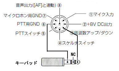 ICOMの無線機の取扱説明書を読んで、外部キーパッドをマイク端子に接続可能と書かれている機種では使用できると思います。