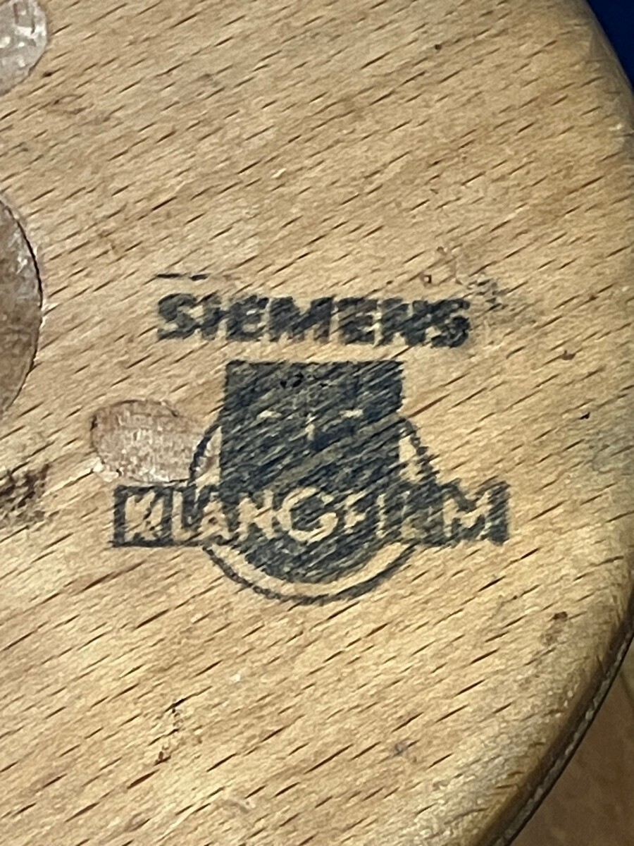 そこで画像の薄汚れた巨大な木製リールを観察すると、SIEMENS/KLANGFILMとダブルネームの判が押してあることから、1964〜65年製であることが推論されます。つまりそれはKLANGFILMを冠した最後のものであり、Siemensを冠した最新のものだった、ということです。