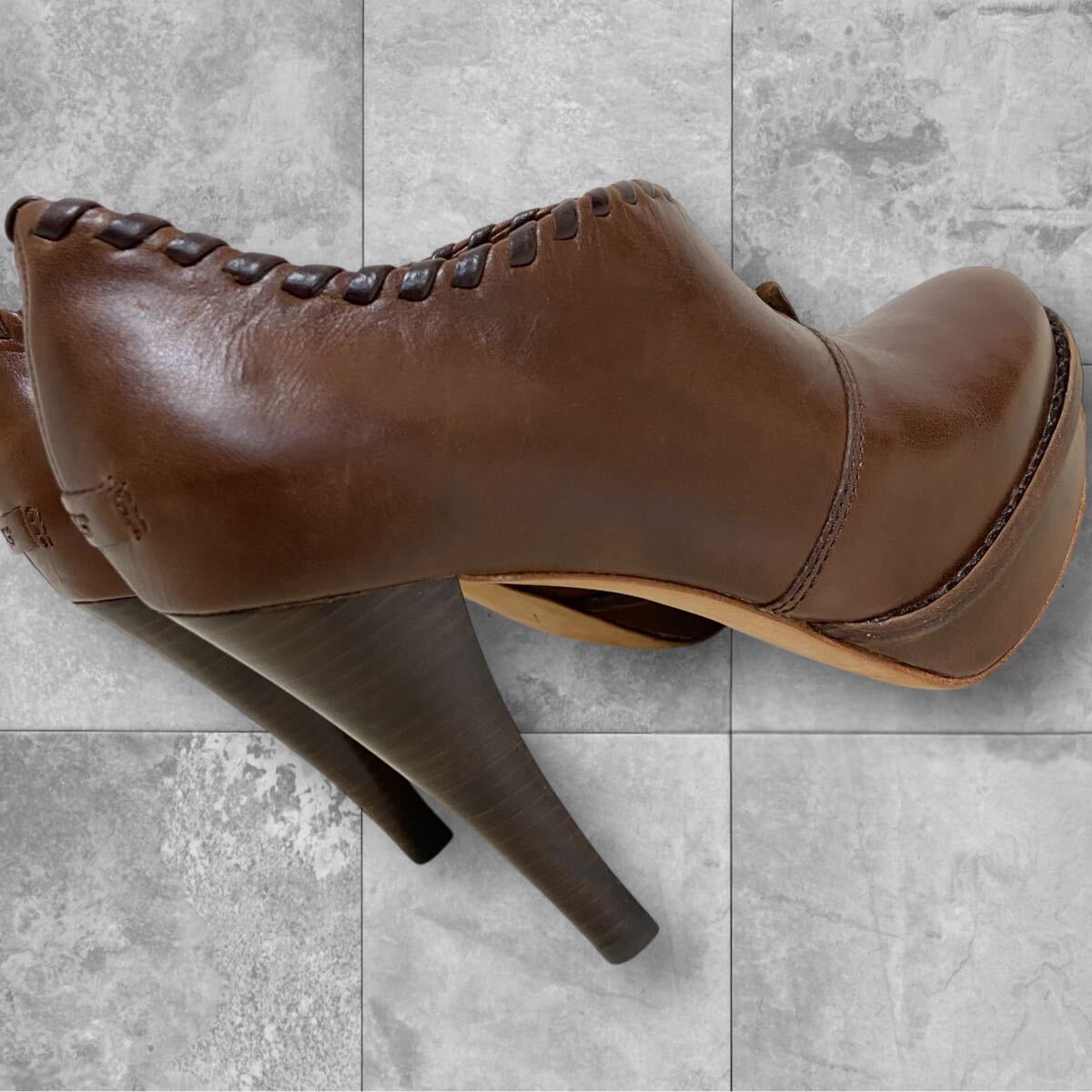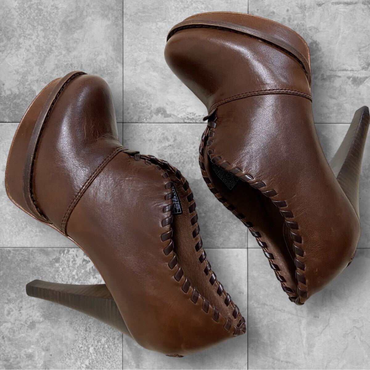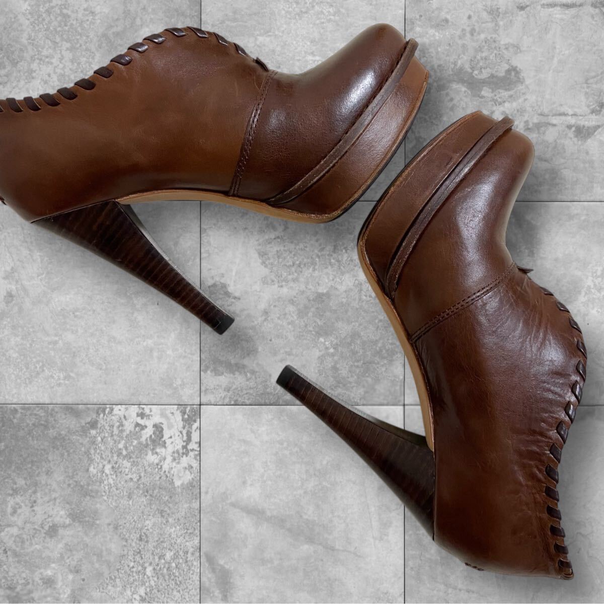 アグのヒールブーティ。モデルネームはジャミソン。完売品。参考定価3.3万。選び抜かれたリアルレザーを贅沢に。本革にしかない繊細な表情と独特の存在感が魅力。フロントV字カットなど考え抜かれた美シルエット。アグお得意の羊革リアルムートンインソール。カラーはブラウン。正規品。簡易清掃済。オイルメンテナンス&簡易清掃済。