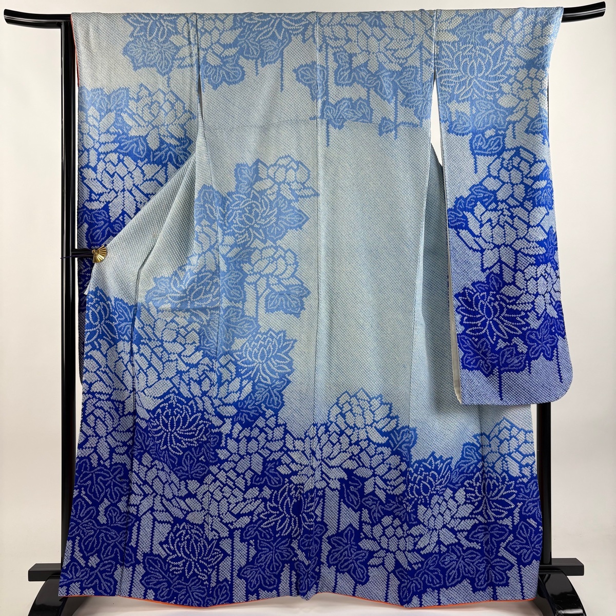 | 振袖 名品 草花 幾何学模様 総絞り 染め分け 水色 袷 身丈165 裄丈68.5 L 正絹 【中古】 |