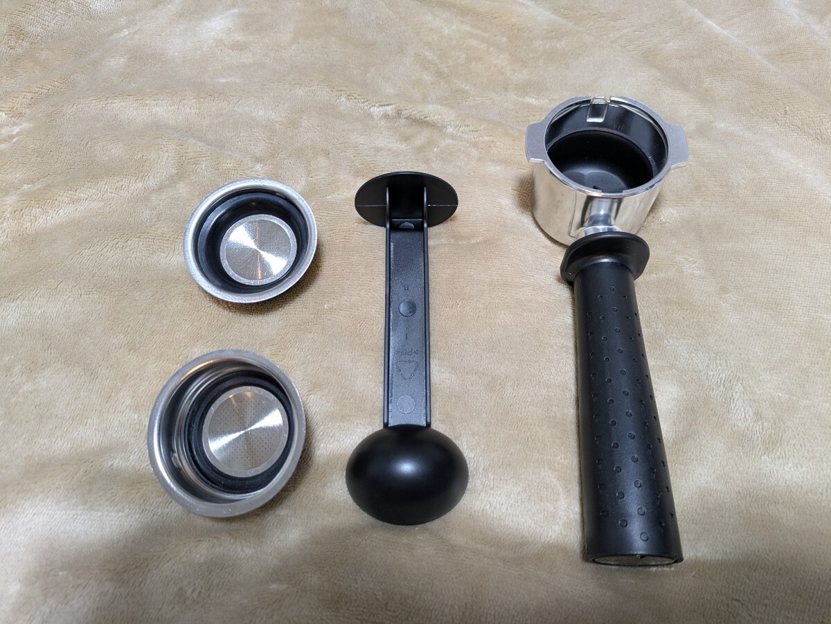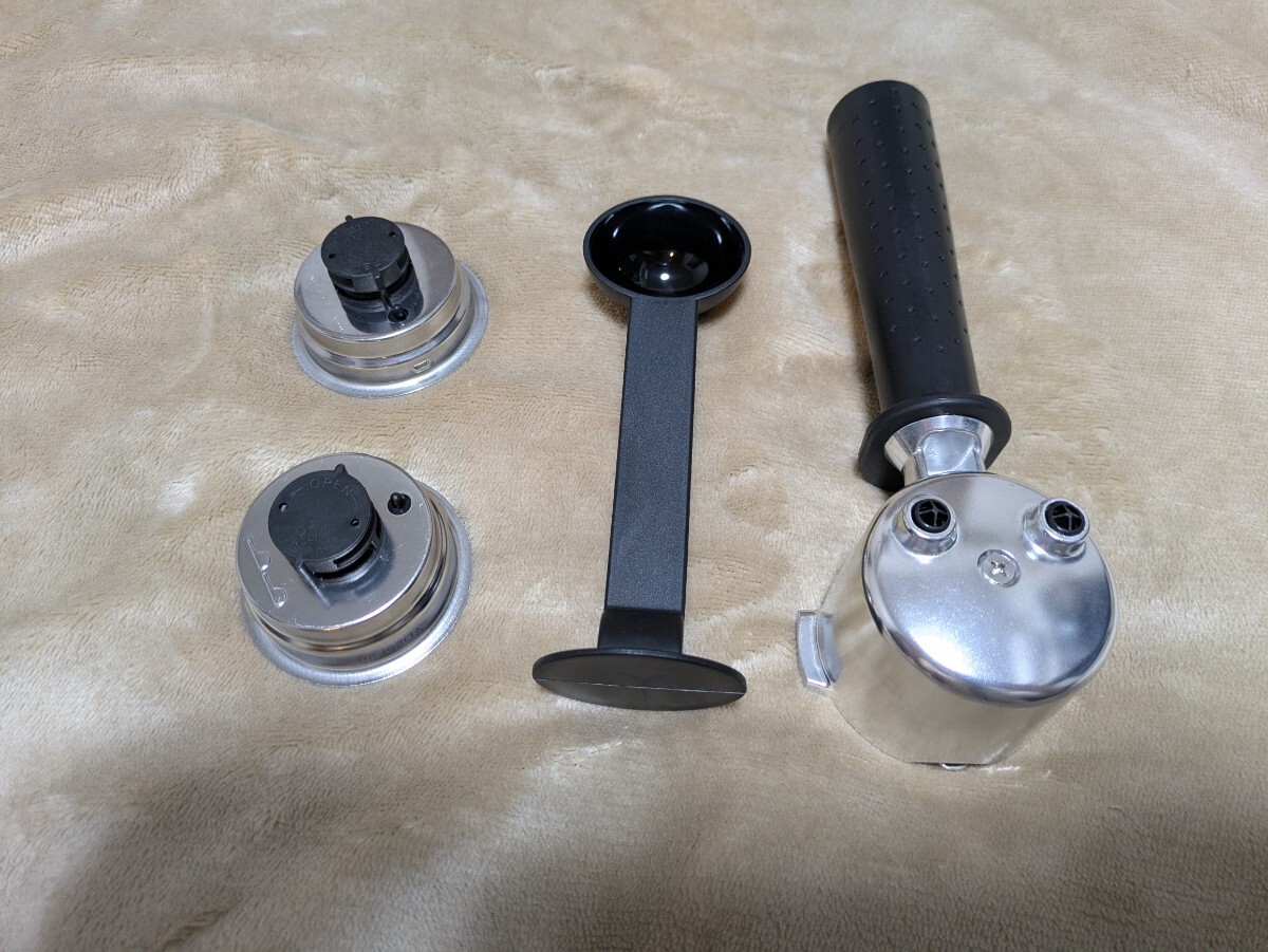 デロンギ製のハンドルとフィルター、ダンパーのセットです。