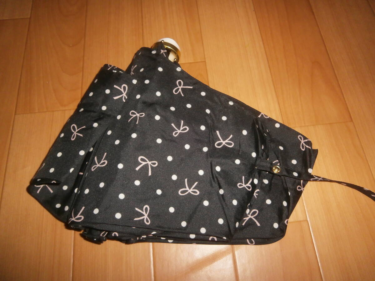 | ★新品★折り畳み傘★雨傘 日傘 両方使えます★黒 リボン★親骨長さ50センチ | ||