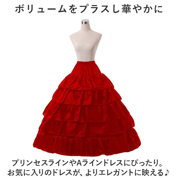 | 商品説明 | ・・ウェディングドレスやパーティー用ドレスのボリュームアップに♪大人用の「パニエ」が登場。 ・【ふんわりシルエットをキープ】 ・ハリのあるフリル生地にワイヤーをプラスし、立体感が生まれるパニエ。美しいフォルムをキープし、足の動きも軽やかに。 ・【締め付けずに心地よくフィット】 ・着脱しやすく負担のかからない、ウエストゴム&面ファスナー仕様。紐をキュッと絞って、自分サイズに調節可能。 ・【折りたたんで持ち運びもスマート】 ・くるっとひねってひとまとめ。スリムな状態で持ち運べるのが嬉しい! ・【ボリュームをプラスし華やかに】 ・プリンセスラインやAラインドレスにぴったり。お気に入りのドレスが、よりエレガントに映える♪ |